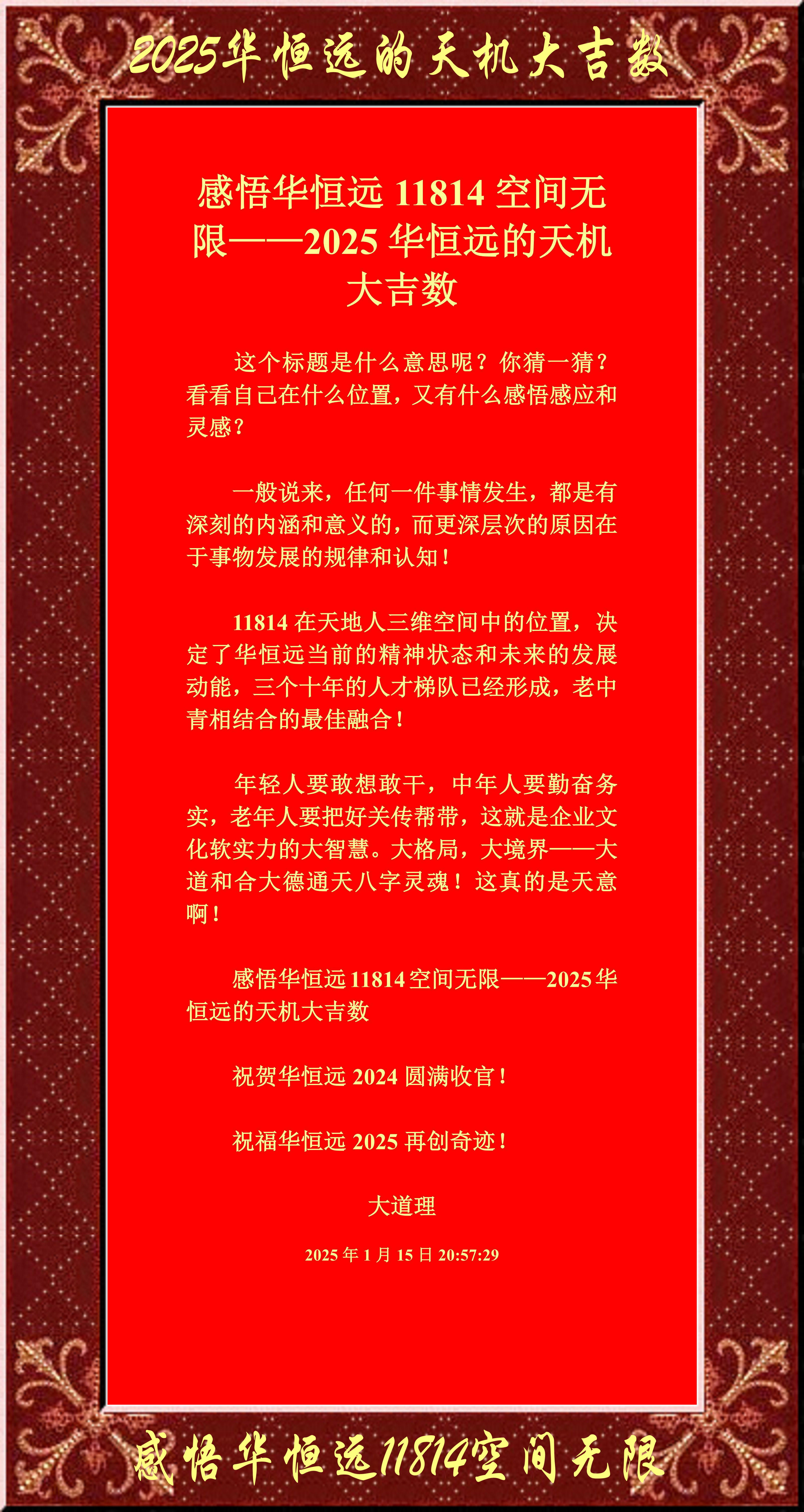感悟華恒遠11814空間無限——2025華恒遠的天機大吉數(shù)