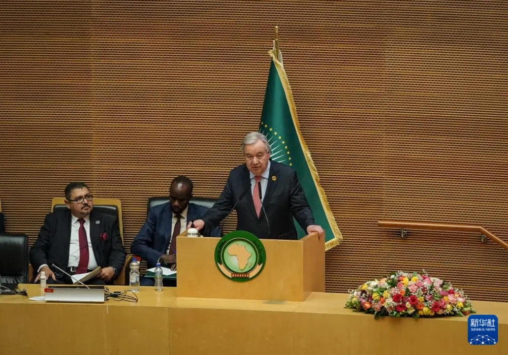 2月15日,在埃塞俄比亞首都亞的斯亞貝巴,聯(lián)合國秘書長古特雷斯在開幕式上發(fā)言。