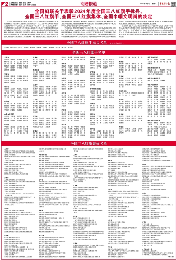 全國(guó)婦聯(lián)關(guān)于表彰2024年度全國(guó)三八紅旗手標(biāo)兵、全國(guó)三八紅旗手、全國(guó)三八紅旗集體、全國(guó)巾幗文明崗的決定