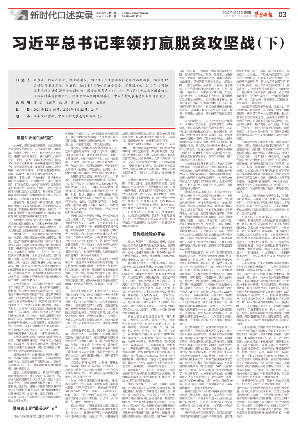 習(xí)近平總書記在脫貧攻堅戰(zhàn)中不僅展現(xiàn)了體察百姓疾苦的人民情懷,也彰顯了始終科學(xué)錨定方向、咬定青山不放松的擔(dān)當(dāng)精神。他常講自己40多年在中國的村、縣、市、省、中央工作,扶貧始終是一個重要內(nèi)容,強(qiáng)調(diào)脫貧攻堅,不要空喊口號,要看行動。每到重要階段,他都直指難點(diǎn)、把脈開方;凡是重要節(jié)點(diǎn),他都“擂鼓”發(fā)令、精準(zhǔn)施策,排兵布陣、抓住關(guān)鍵,以超凡的政治定力把穩(wěn)方向,全方位預(yù)防和化解返貧風(fēng)險。在他的感染和率領(lǐng)下,各級黨政部門和廣大黨員干部以“不破樓蘭終不還”的決心和意志鉚足了勁兒干,確保不走彎路、不出紕漏、不“翻燒餅”,可以說向全國人民交出了一份滿意的答卷,在世界反貧困的歷史上創(chuàng)造了中國減貧奇跡。
