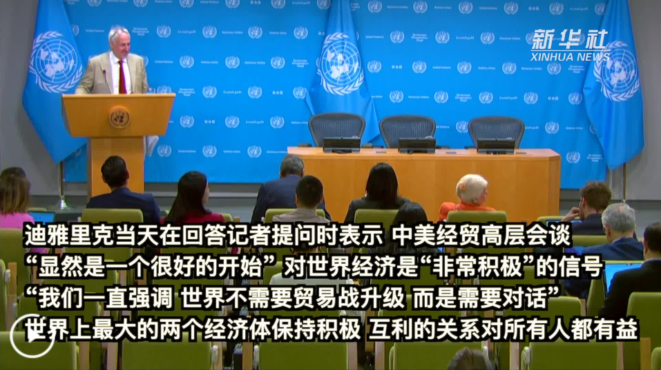 新華社聯(lián)合國5月12日電 聯(lián)合國秘書長發(fā)言人迪雅里克12日說,聯(lián)合國秘書長古特雷斯對中美經(jīng)貿(mào)高層會談成果表示歡迎,認(rèn)為這對全球經(jīng)濟(jì)是一個“非常積極”的信號。