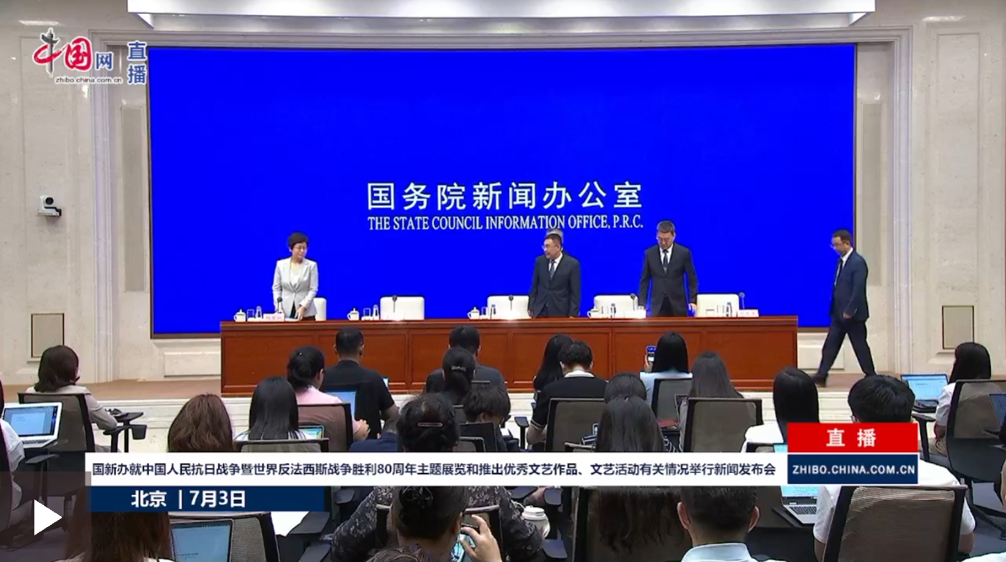 女士們、先生們,大家上午好!歡迎出席國(guó)務(wù)院新聞辦新聞發(fā)布會(huì)。今天的發(fā)布會(huì)我們邀請(qǐng)到文化和旅游部副部長(zhǎng)盧映川先生,廣電總局副局長(zhǎng)劉建國(guó)先生,中央廣電總臺(tái)副臺(tái)長(zhǎng)王曉真先生,中國(guó)人民抗日戰(zhàn)爭(zhēng)紀(jì)念館館長(zhǎng)羅存康先生,請(qǐng)他們向大家介紹中國(guó)人民抗日戰(zhàn)爭(zhēng)暨世界反法西斯戰(zhàn)爭(zhēng)勝利80周年主題展覽和推出優(yōu)秀文藝作品、文藝活動(dòng)有關(guān)情況,并回答大家關(guān)心的問(wèn)題。