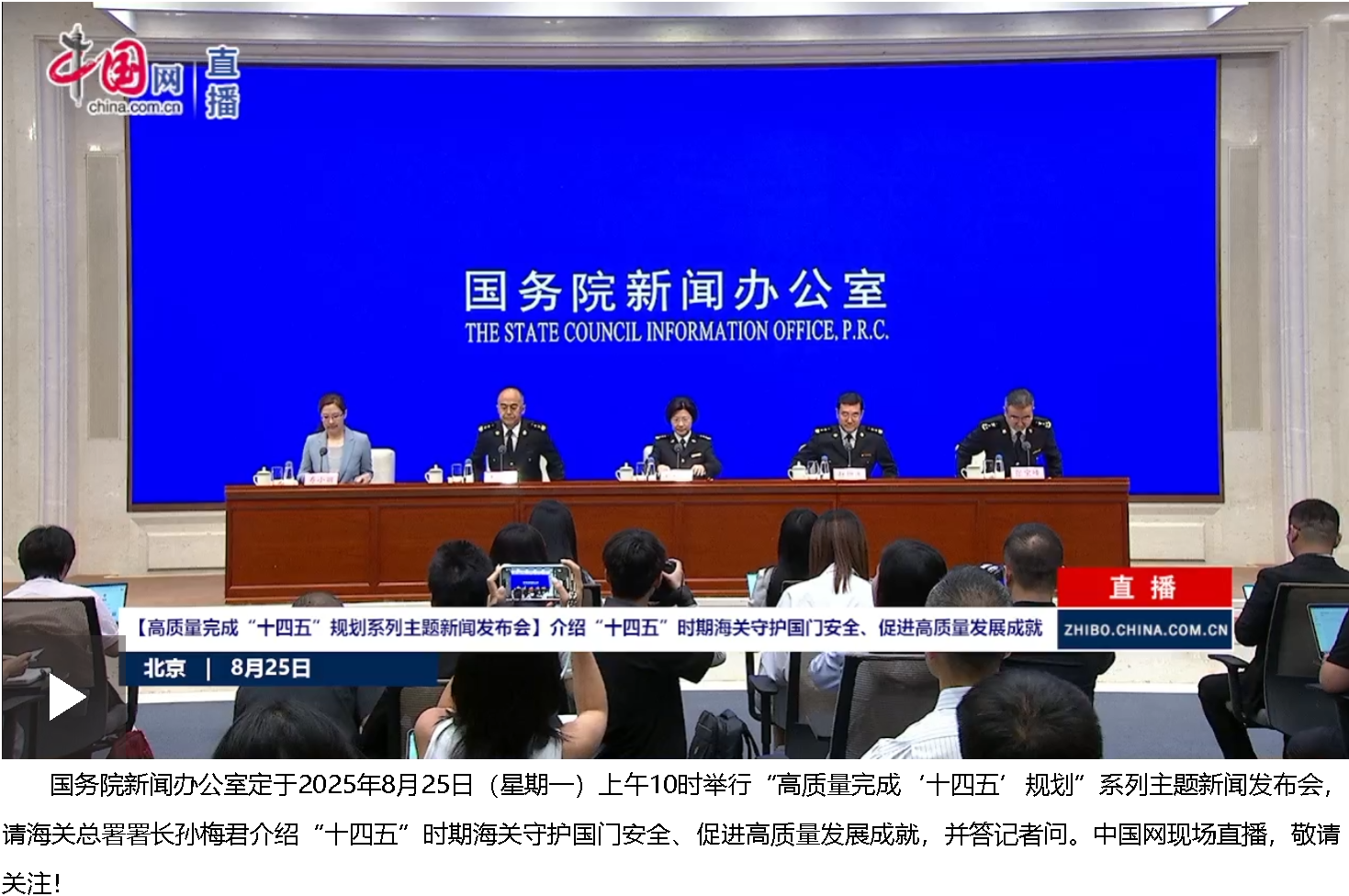 國務院新聞辦公室25日舉行“高質(zhì)量完成‘十四五’規(guī)劃”系列主題新聞發(fā)布會,介紹“十四五”時期海關(guān)守護國門安全、促進高質(zhì)量發(fā)展成就。