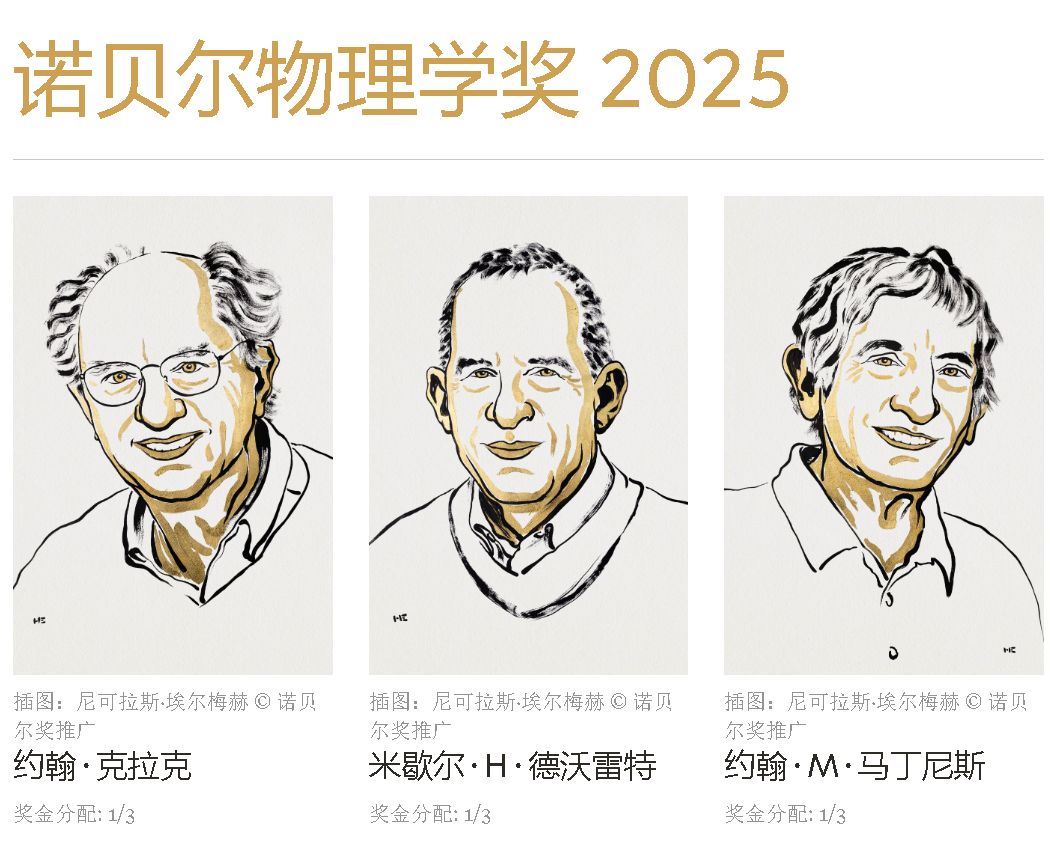 新華社斯德哥爾摩10月7日電(記者郭爽 張兆卿)在量子力學誕生百年之際,瑞典皇家科學院7日宣布,將2025年諾貝爾物理學獎授予約翰·克拉克、米歇爾·H·德沃雷和約翰·M·馬蒂尼斯三名量子物理學家,以表彰他們在電路中實現(xiàn)宏觀量子力學隧穿效應和能量量子化方面的貢獻。