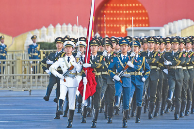 10月1日,隆重的升國(guó)旗儀式在北京天安門廣場(chǎng)舉行。 |