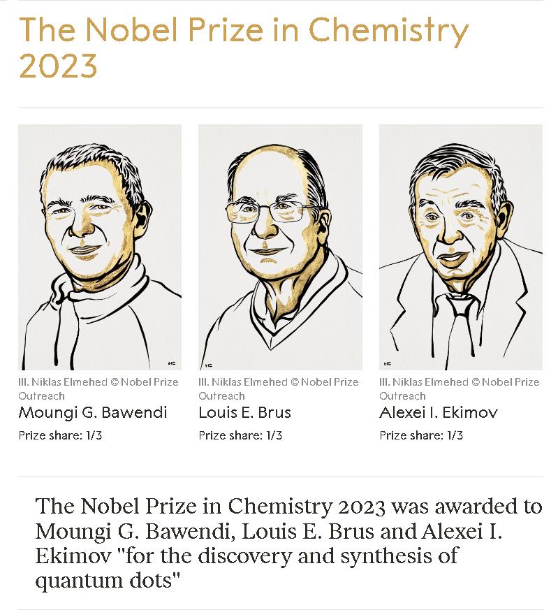 新華社斯德哥爾摩10月4日電(記者和苗 付一鳴)瑞典皇家科學(xué)院4日宣布,將2023年諾貝爾化學(xué)獎(jiǎng)授予三名科學(xué)家蒙吉·巴文迪、路易斯·布魯斯和阿列克謝·葉基莫夫,以表彰他們?cè)诎l(fā)現(xiàn)和合成量子點(diǎn)方面所作出的貢獻(xiàn)。