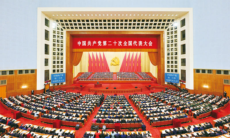 黨的二十大提出開(kāi)辟馬克思主義中國(guó)化時(shí)代化新境界的重大任務(wù),強(qiáng)調(diào)這是當(dāng)代中國(guó)共產(chǎn)黨人的莊嚴(yán)歷史責(zé)任。圖為2022年10月16日,中國(guó)共產(chǎn)黨第二十次全國(guó)代表大會(huì)在北京人民大會(huì)堂開(kāi)幕。 新華社記者 岳月偉/攝