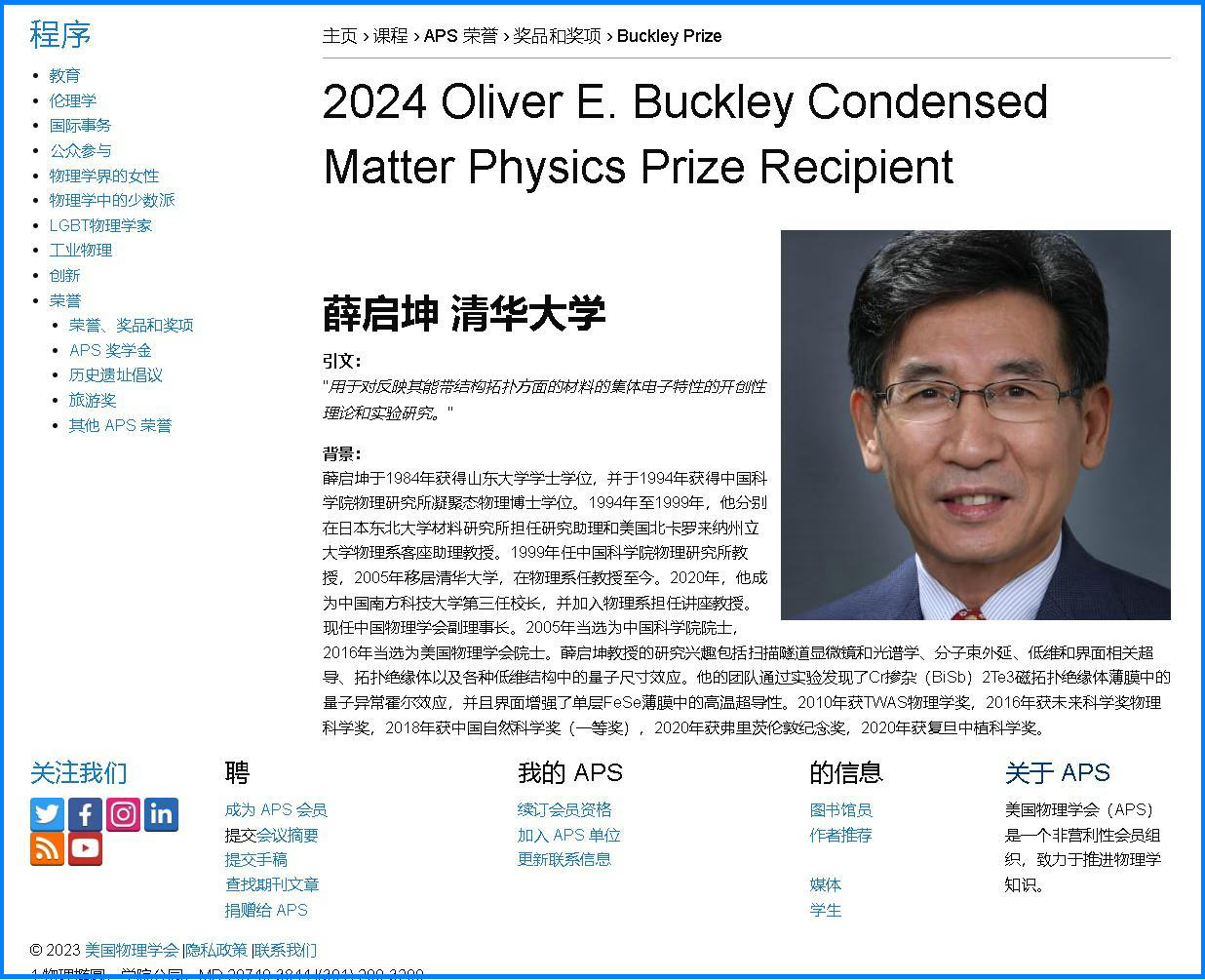 憑借拓?fù)浣^緣體研究和在拓?fù)浣^緣體中發(fā)現(xiàn)量子反?;魻栃?yīng)的創(chuàng)新突破,薛其坤成為巴克利獎(jiǎng)授獎(jiǎng)70年來首位中國籍獲獎(jiǎng)?wù)摺?