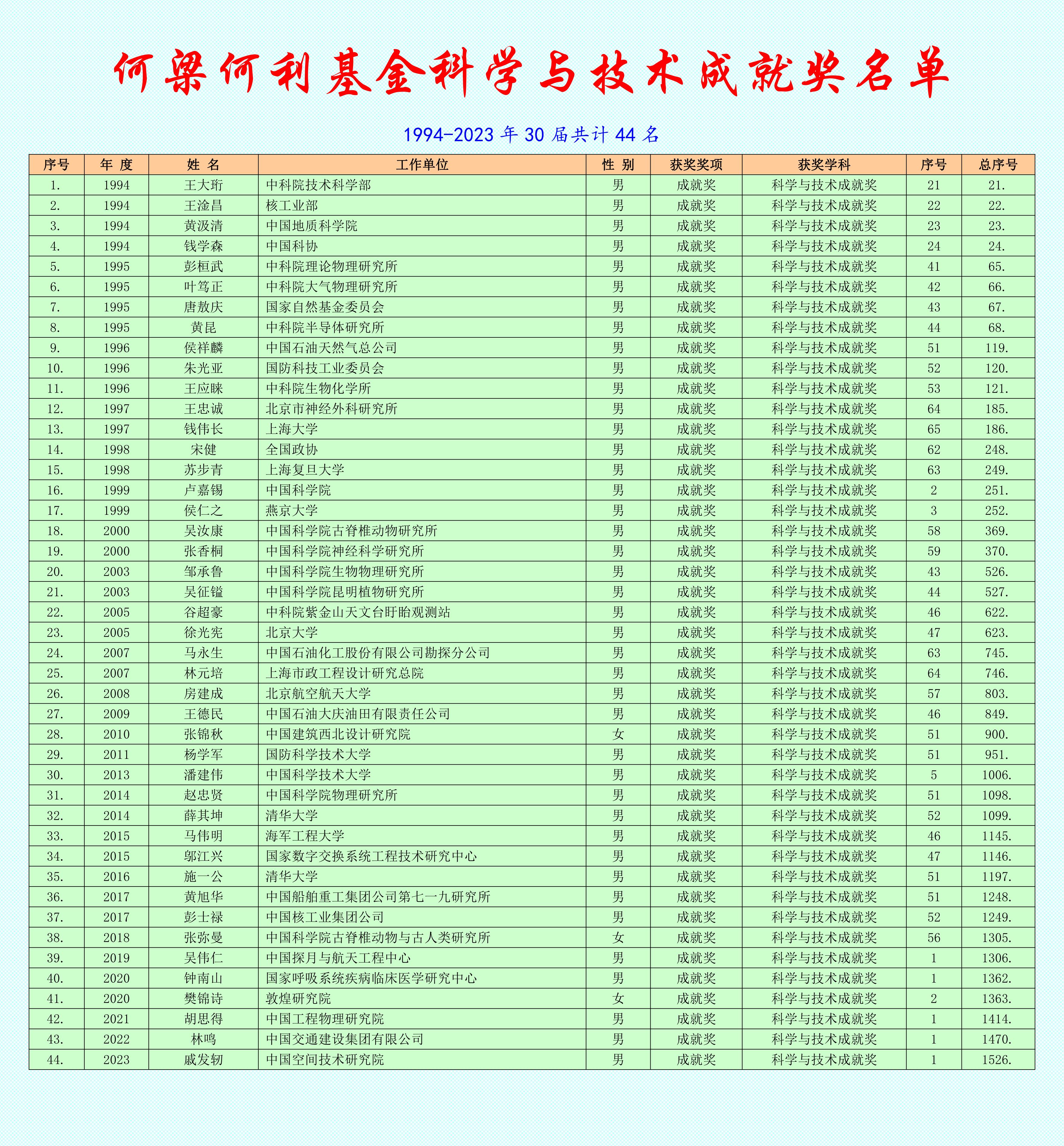 何梁何利基金由香港愛國金融家何善衡、梁銶琚、何添、利國偉于1994年創(chuàng)立,旨在獎勵中國杰出科學(xué)家,服務(wù)于國家現(xiàn)代化建設(shè)。29年來,共遴選獎勵1582位杰出科技工作者,成為我國社會力量創(chuàng)設(shè)科技獎項的成功范例,為激發(fā)我國科技發(fā)展的活力、培養(yǎng)自主創(chuàng)新人才發(fā)揮了積極作用。