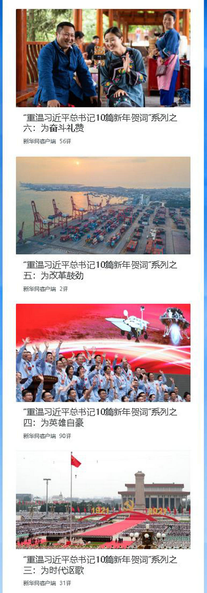 新華社《學(xué)習(xí)進行時》原創(chuàng)品牌欄目“講習(xí)所”推出系列報道,與您一同重讀10篇賀詞,重溫10年歷程,共同迎接2024的新年鐘聲。