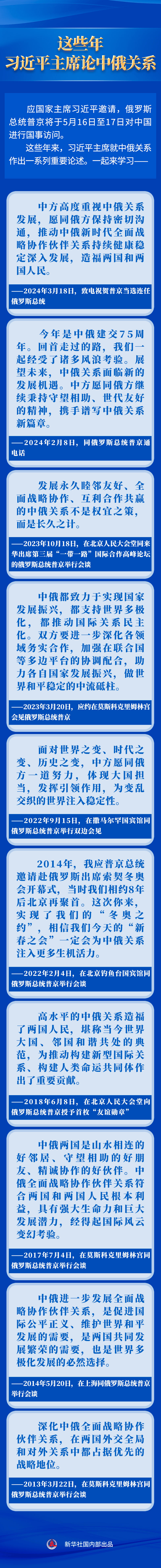 習(xí)近平強(qiáng)調(diào),中俄關(guān)系75年發(fā)展歷史得出的最重要結(jié)論,就是兩個相鄰的大國之間,必須始終弘揚(yáng)和平共處五項(xiàng)原則,相互尊重、平等互信、照顧彼此關(guān)切,真正為雙方的發(fā)展振興相互提供助力。這既是中俄兩國正確相處之道,也是21世紀(jì)大國關(guān)系應(yīng)該努力的方向。中俄關(guān)系有著深厚的歷史積淀和堅實(shí)的民意基礎(chǔ),雙方要密切戰(zhàn)略協(xié)作和互利合作,堅定地走自己的發(fā)展道路,堅定維護(hù)國際公平正義。