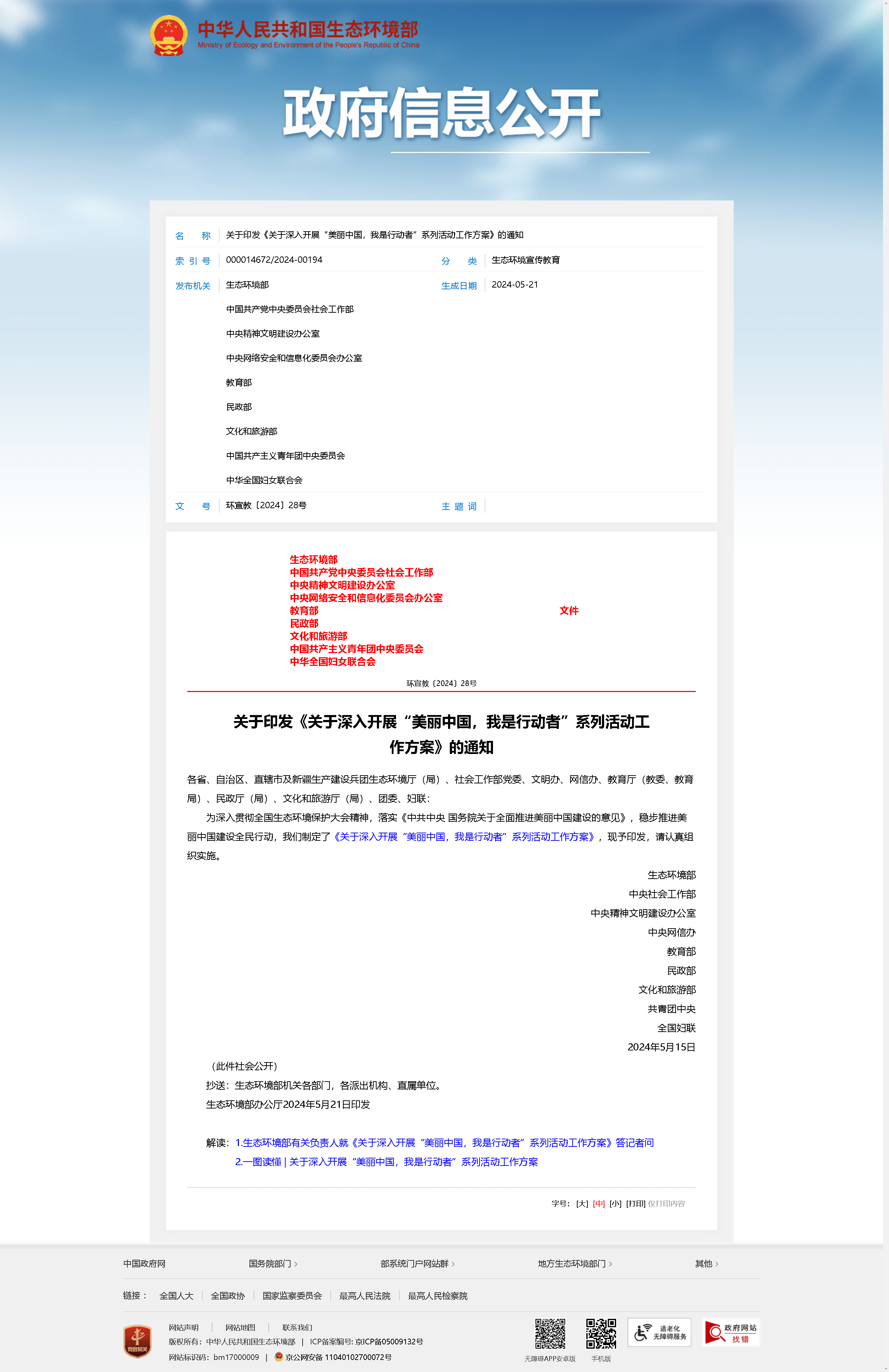 生態(tài)環(huán)境部等九部門印發(fā)方案,深入開展“美麗中國(guó),我是行動(dòng)者”系列活動(dòng)