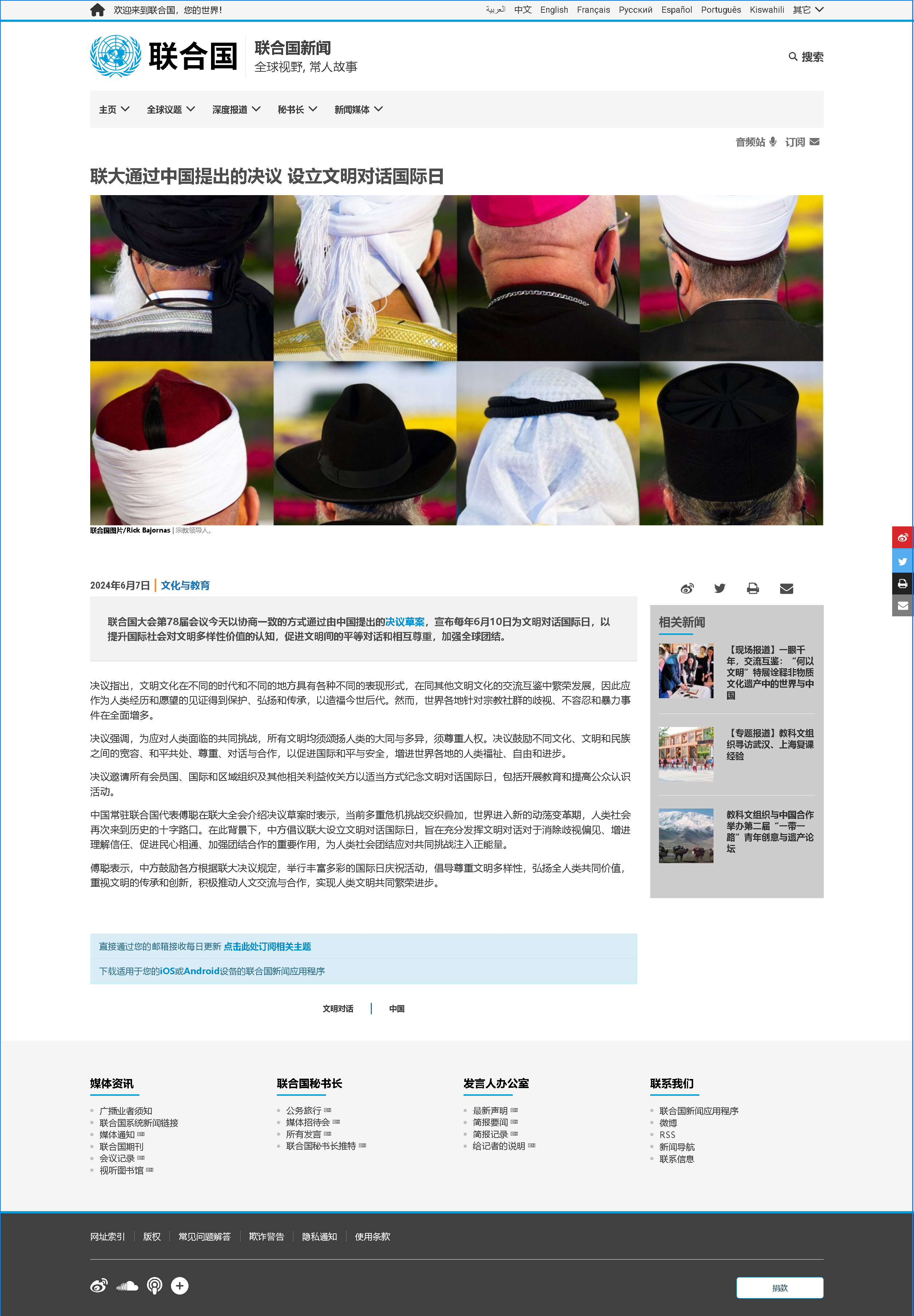 聯(lián)大通過(guò)中國(guó)提出的決議 設(shè)立文明對(duì)話(huà)國(guó)際日