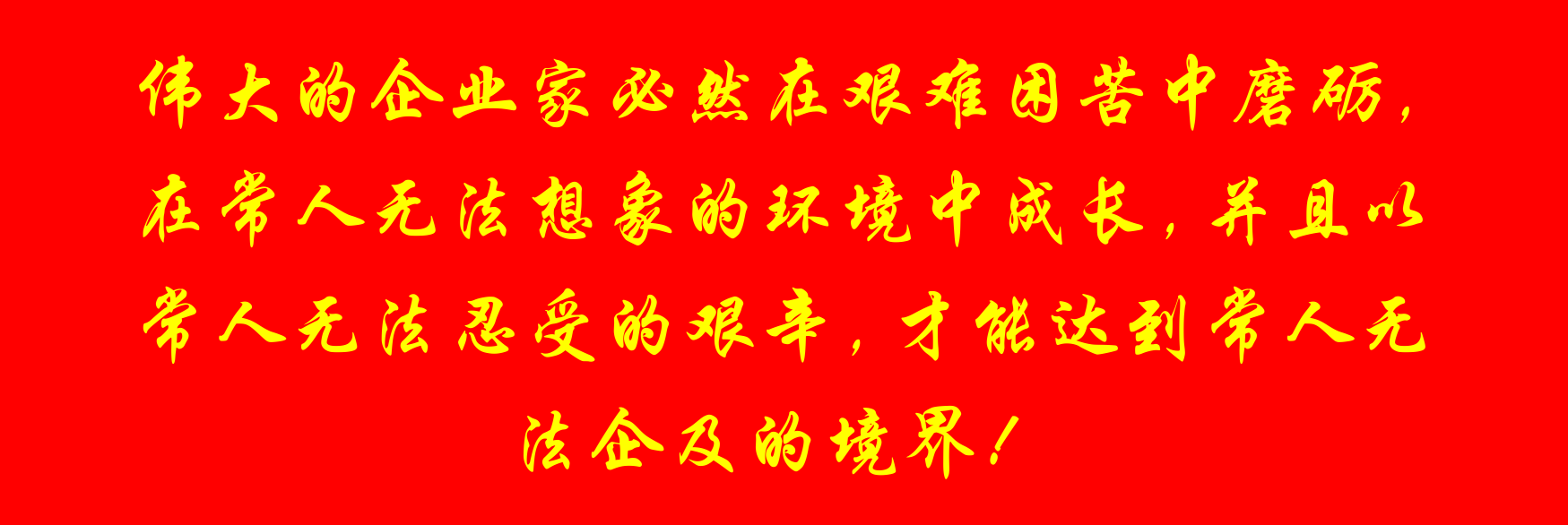 偉大的企業(yè)家必然在艱難困苦中磨礪,在常人無法想象的環(huán)境中成長,并且以常人無法忍受的艱辛,才能達到常人無法企及的境界!如果你能夠聚集一百人,你就是小悟水平的企業(yè);如果你能夠達到一千人,就是中悟的公司了;如果能夠讓一萬人在你的集團工作,可以達到大悟的標準了;超越十萬人能夠讓幾十萬人在你的麾下工作,大徹大悟的頂峰已經(jīng)在你的腳下了,那是什么概念呢?!