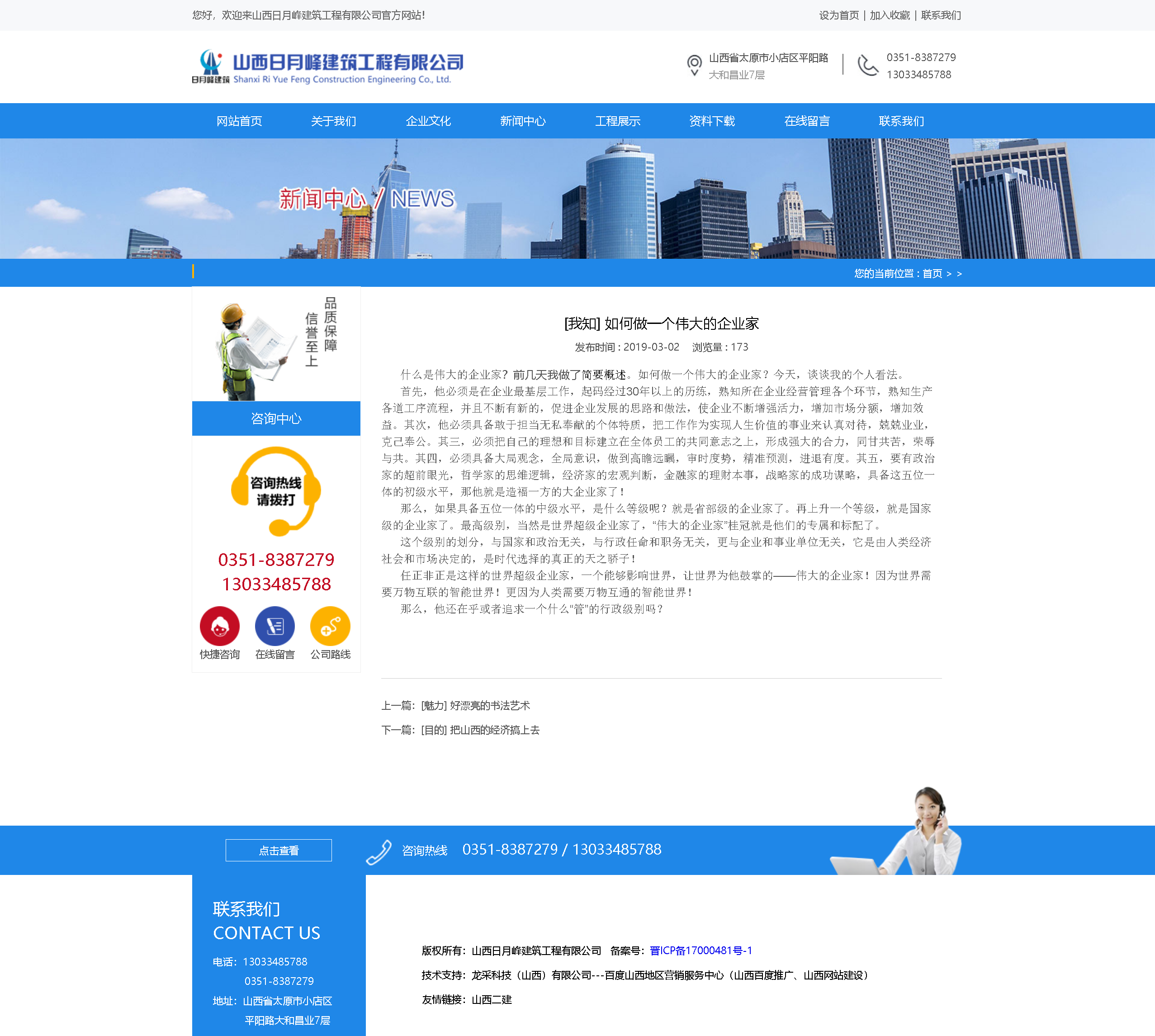 作為建筑企業(yè),把建造人類美好幸福的家園,作為實現(xiàn)企業(yè)做大做強的發(fā)展戰(zhàn)略,需要科技領先,技術(shù)先進,理念超前,服務周到,一流的質(zhì)量,一流的信譽,一流的觀念!