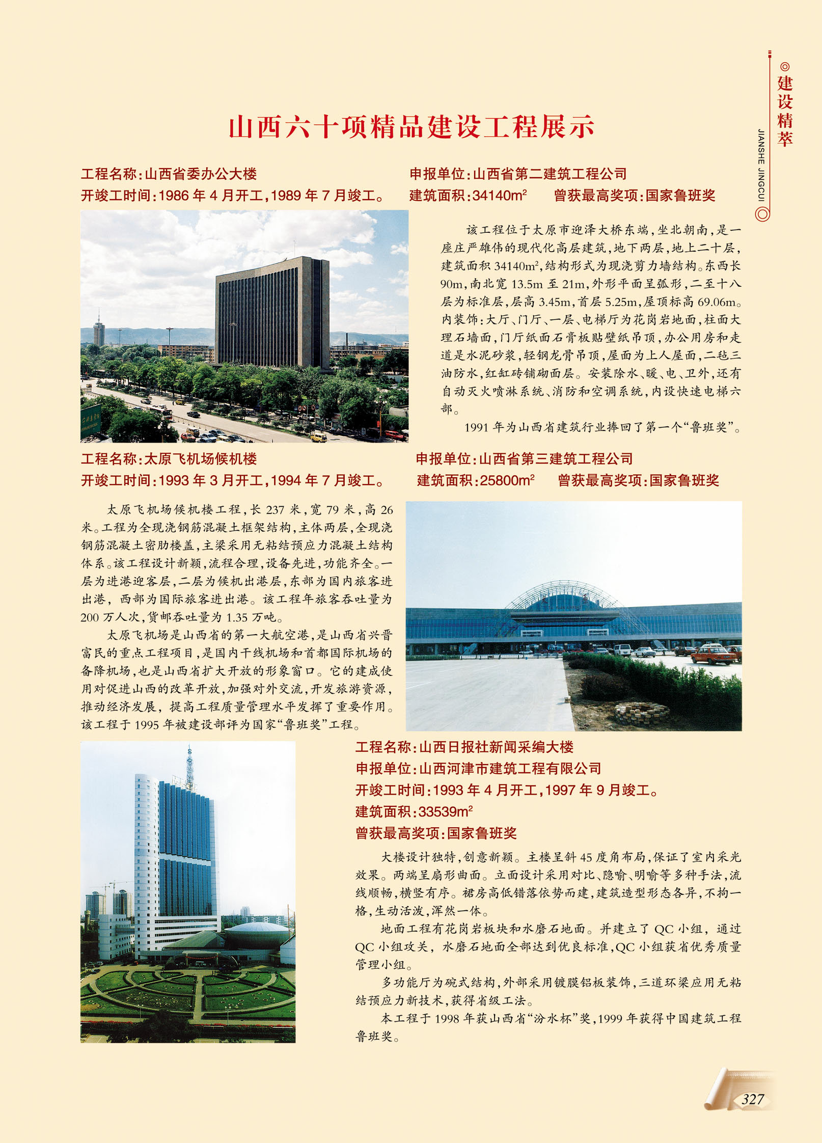 作為對(duì)我們這個(gè)行業(yè)和企業(yè)未來(lái)的關(guān)注,魯班獎(jiǎng)與我有不解之緣,因?yàn)樯轿魇〉谝婚佐敯嗒?jiǎng)就是我的母企獲得的,這也是我一直以來(lái)把編輯珍藏魯班獎(jiǎng)資料的初衷和動(dòng)力,這是一份驕傲和揮之不去的永久記憶!