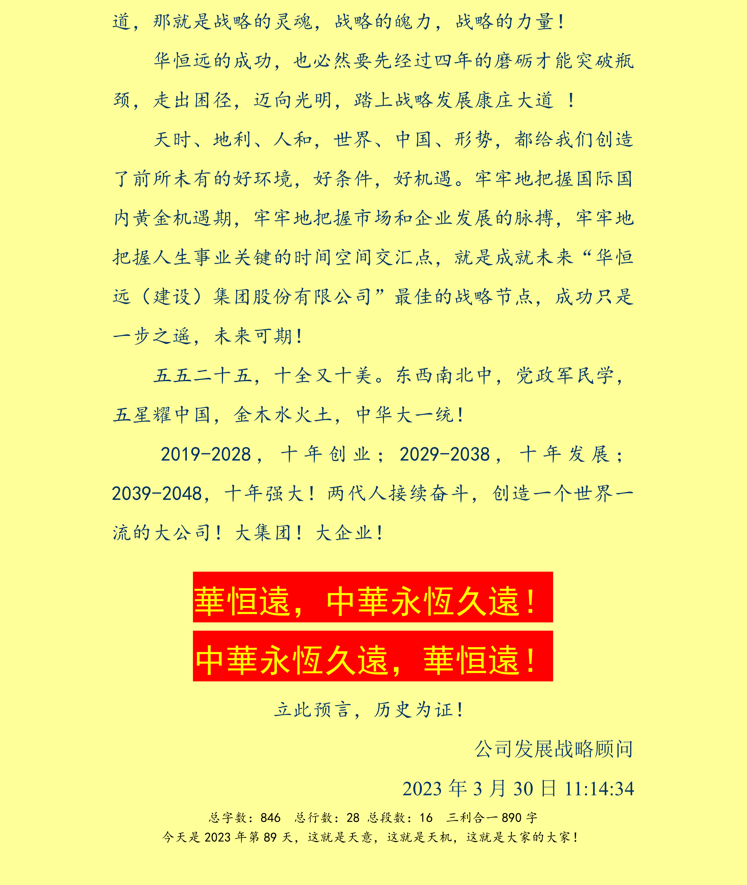 2019-2028,十年創(chuàng)業(yè);2029-2038,十年發(fā)展;2039-2048,十年強大!兩代人接續(xù)奮斗,創(chuàng)造一個世界一流的大公司!大集團!大企業(yè)!