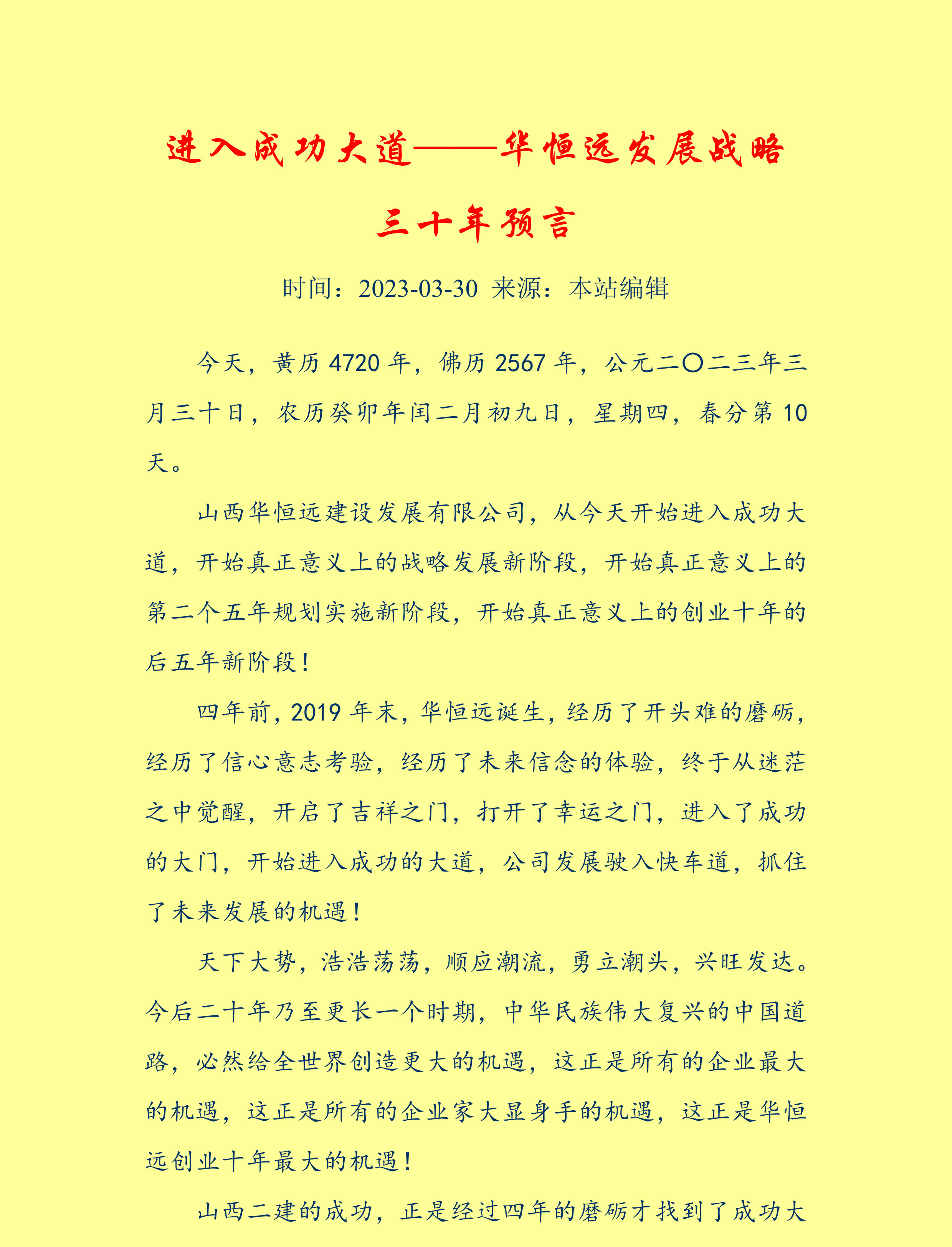 山西華恒遠建設(shè)發(fā)展有限公司,從今天開始進入成功大道,開始真正意義上的戰(zhàn)略發(fā)展新階段,開始真正意義上的第二個五年規(guī)劃實施新階段,開始真正意義上的創(chuàng)業(yè)十年的后五年新階段!
