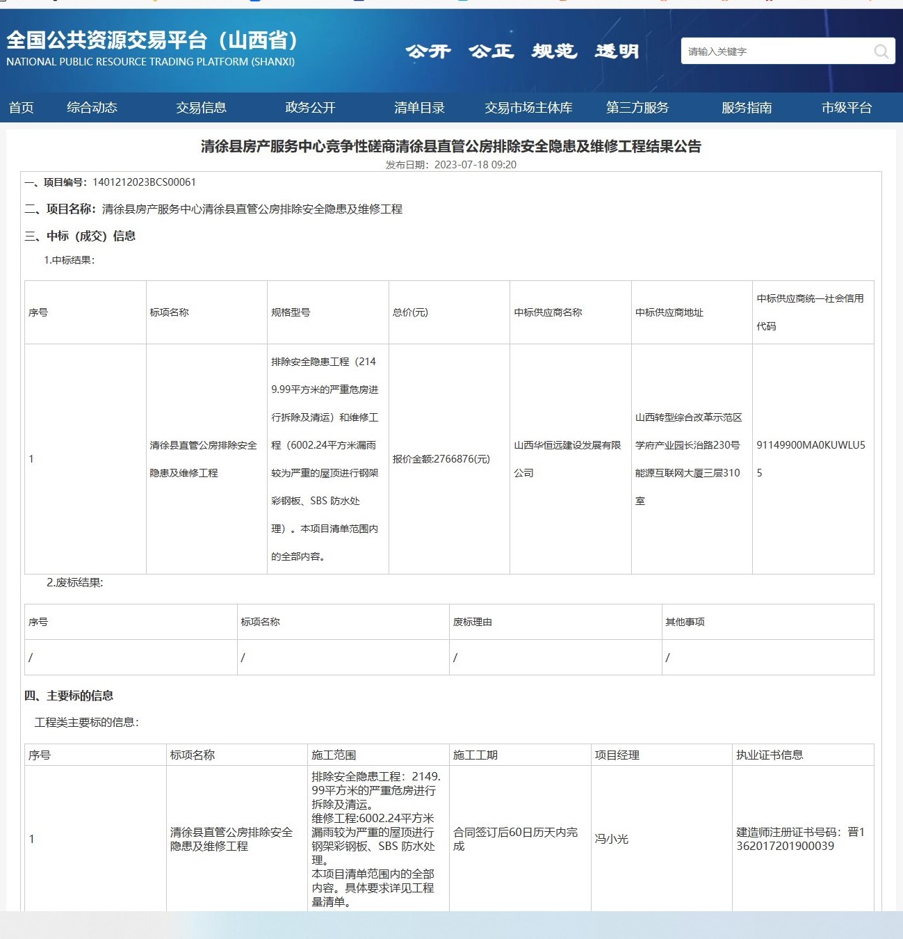 清徐縣房產(chǎn)服務(wù)中心競爭性磋商清徐縣直管公房排除安全隱患及維修工程