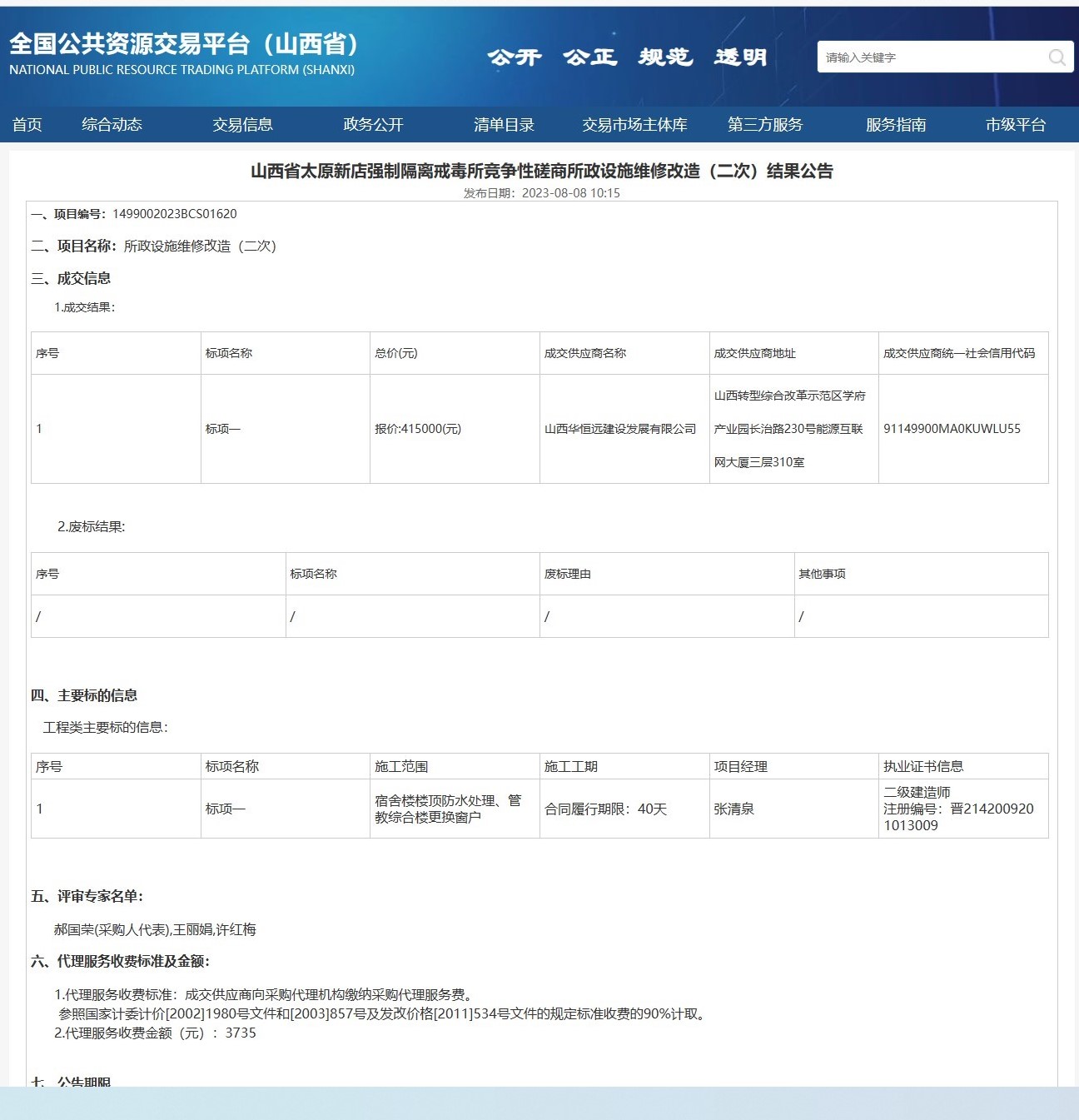 山西省太原新店強(qiáng)制隔離戒毒所競爭性磋商所政設(shè)施維修改造(二次)