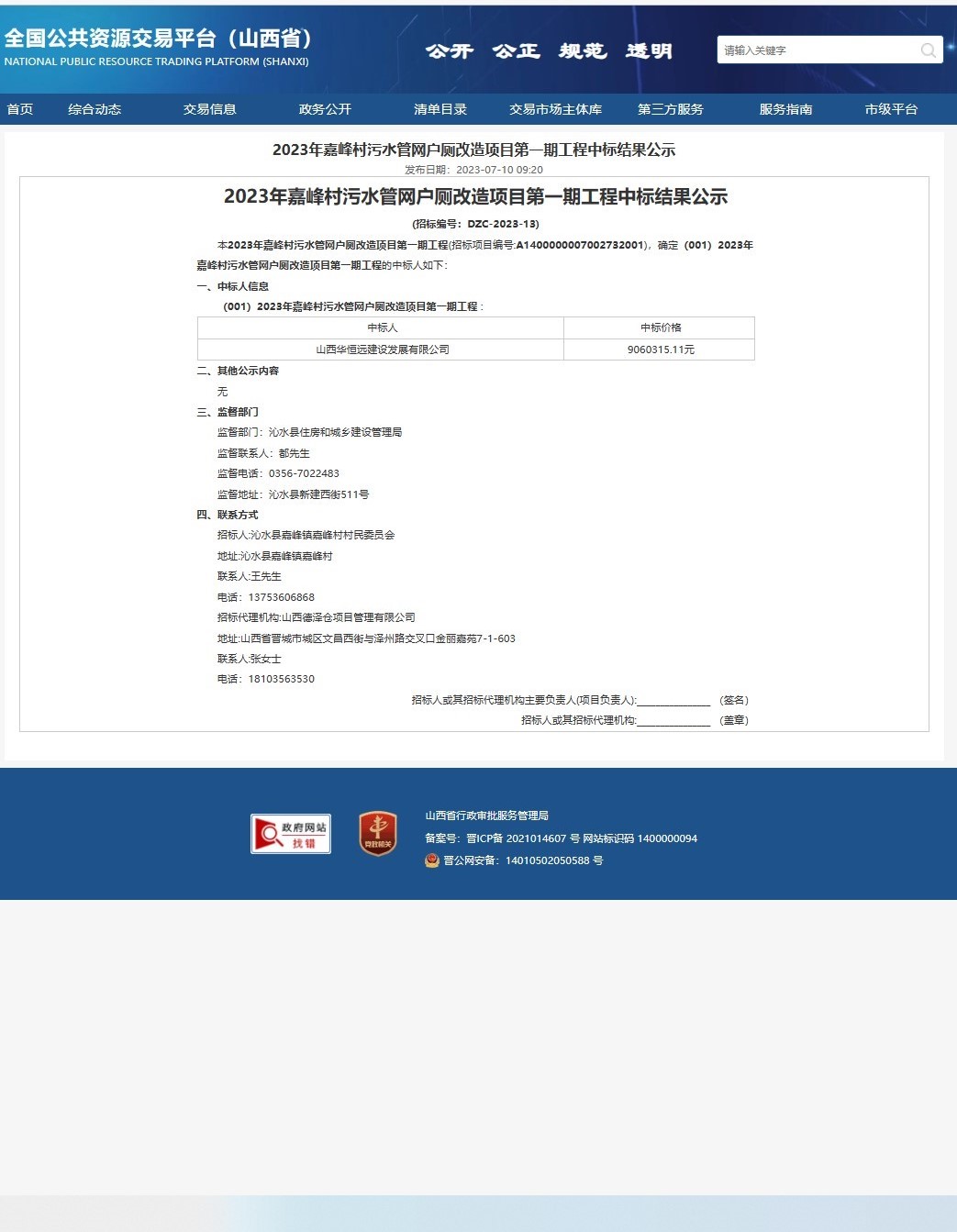 2023年嘉峰村污水管網(wǎng)戶廁改造項(xiàng)目第一期工程