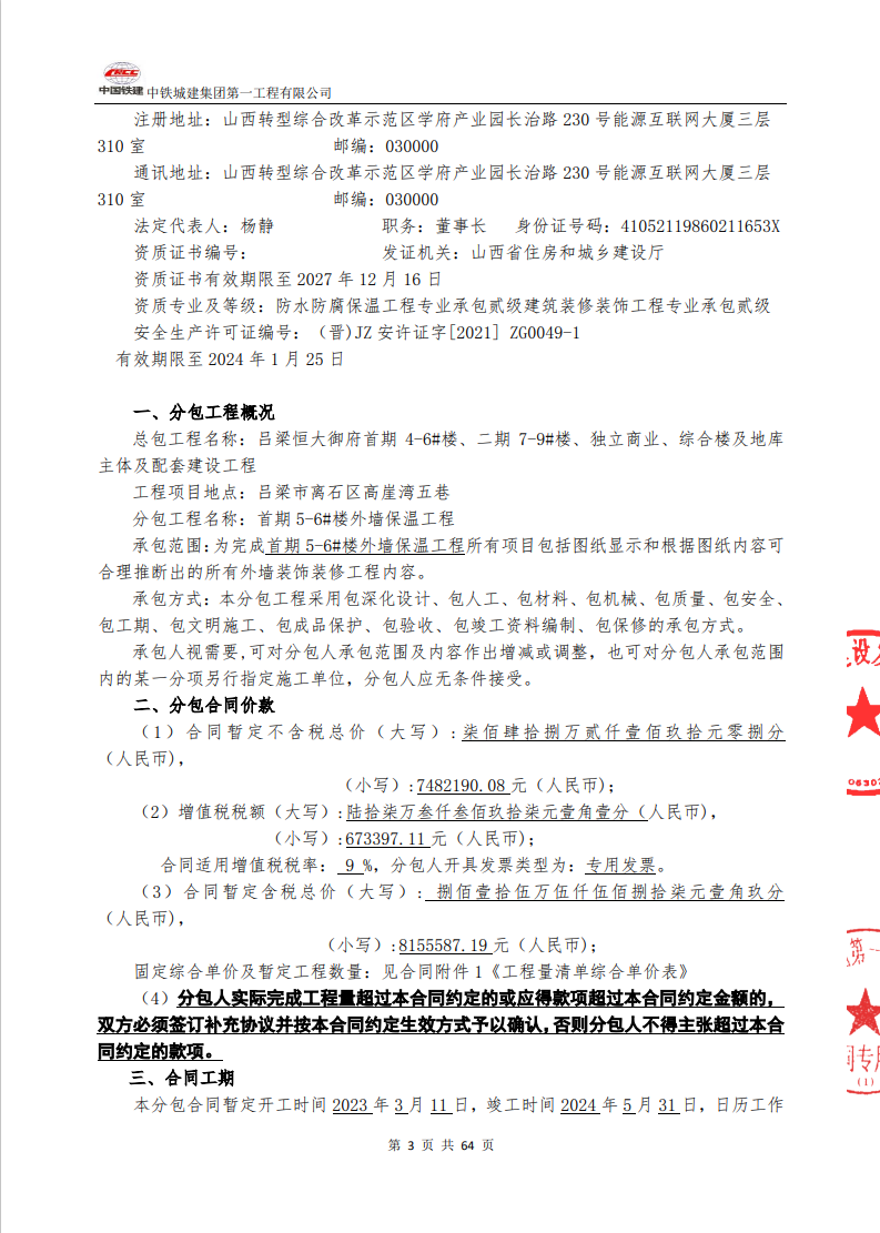 呂梁恒大御府首期 4-6#樓、二期 7-9#樓、獨立商業(yè)、綜合樓及地庫 主體及配套建設工程