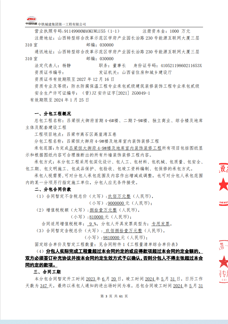 呂梁恒大御府 4-9#樓及地庫(kù)室內(nèi)裝飾裝修工程
