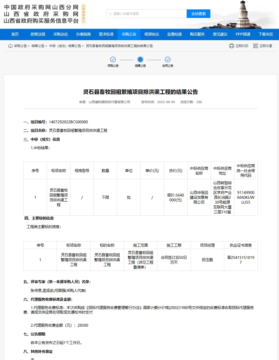 靈石縣畜牧回祖繁殖項(xiàng)目排洪渠工程
