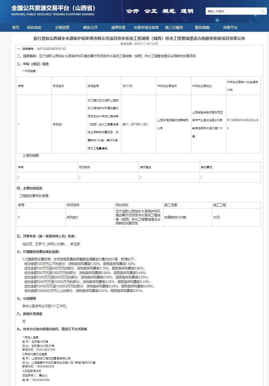 亞行貸款山西城鄉(xiāng)水源保護和環(huán)境改善示范項目供水系統(tǒng)工程城南(城西)供水工程管線埋設占用耕地恢復項目