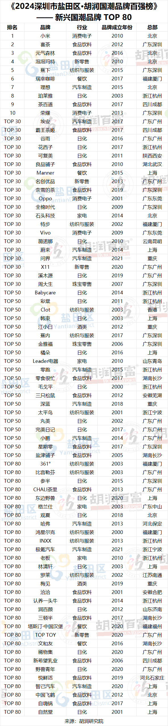 2024深圳市鹽田區(qū)·胡潤(rùn)國(guó)潮品牌百?gòu)?qiáng)榜