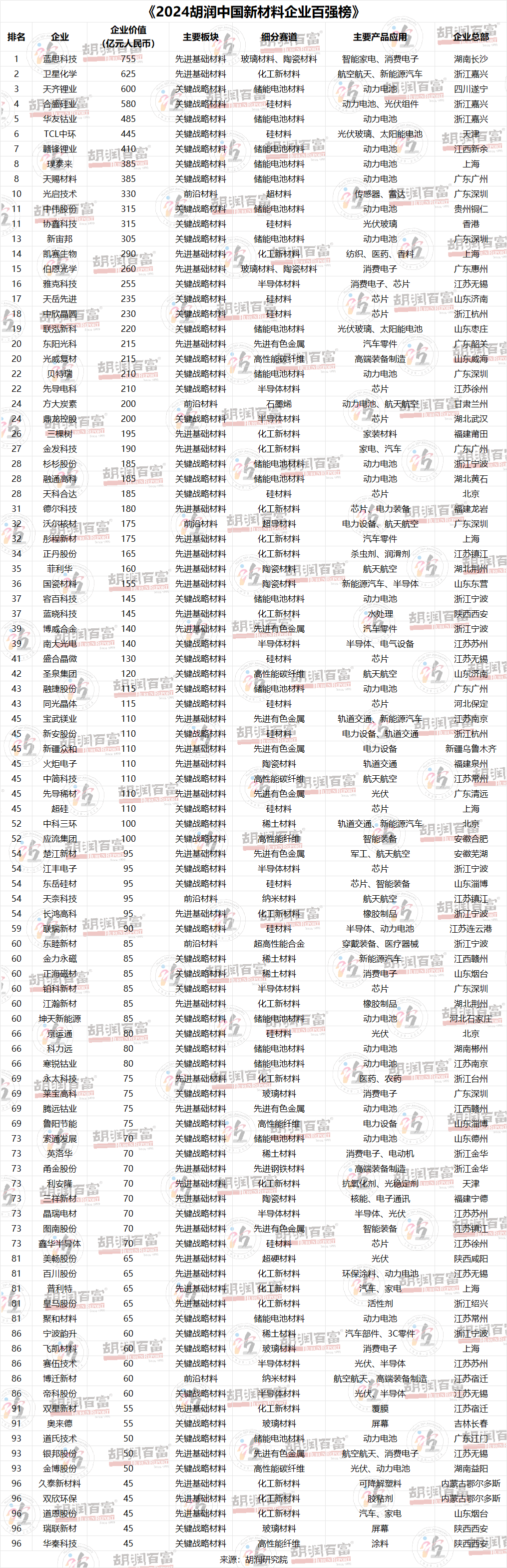 胡潤(rùn)研究院發(fā)布《2024胡潤(rùn)中國(guó)新材料企業(yè)百?gòu)?qiáng)榜》 ——尋找中國(guó)新材料領(lǐng)域最具價(jià)值的非國(guó)有企業(yè)