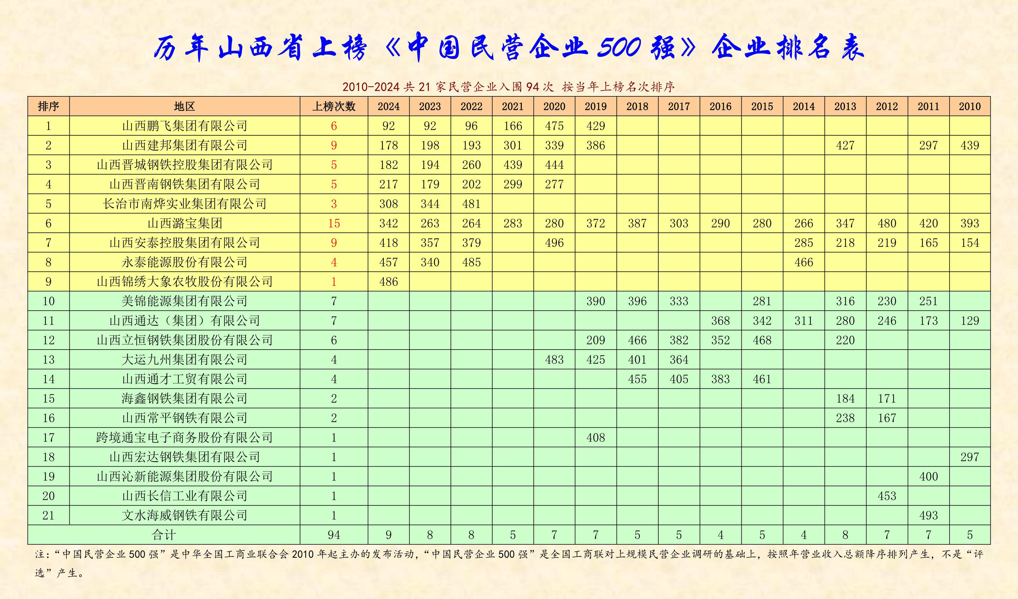 10月12日,全國工商聯(lián)發(fā)布2024中國民營企業(yè)500強(qiáng)名單。我省有9家民營企業(yè)榜上有名,數(shù)量比去年增加一席。位于我市的山西梗陽投資集團(tuán)有限公司進(jìn)入“2024中國制造業(yè)民營企業(yè)500強(qiáng)”。