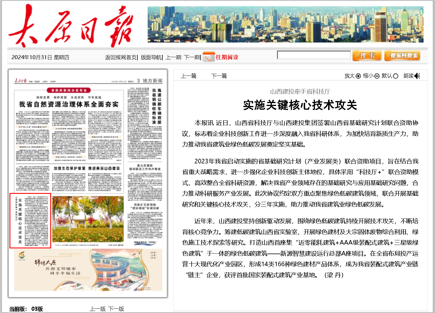 近日,山西省科技廳與山西建投集團簽署山西省基礎研究計劃聯(lián)合資助協(xié)議,標志著企業(yè)科技創(chuàng)新工作進一步深度融入我省科研體系,為加快培育新質(zhì)生產(chǎn)力,助力推動我省建筑業(yè)綠色低碳發(fā)展奠定堅實基礎。