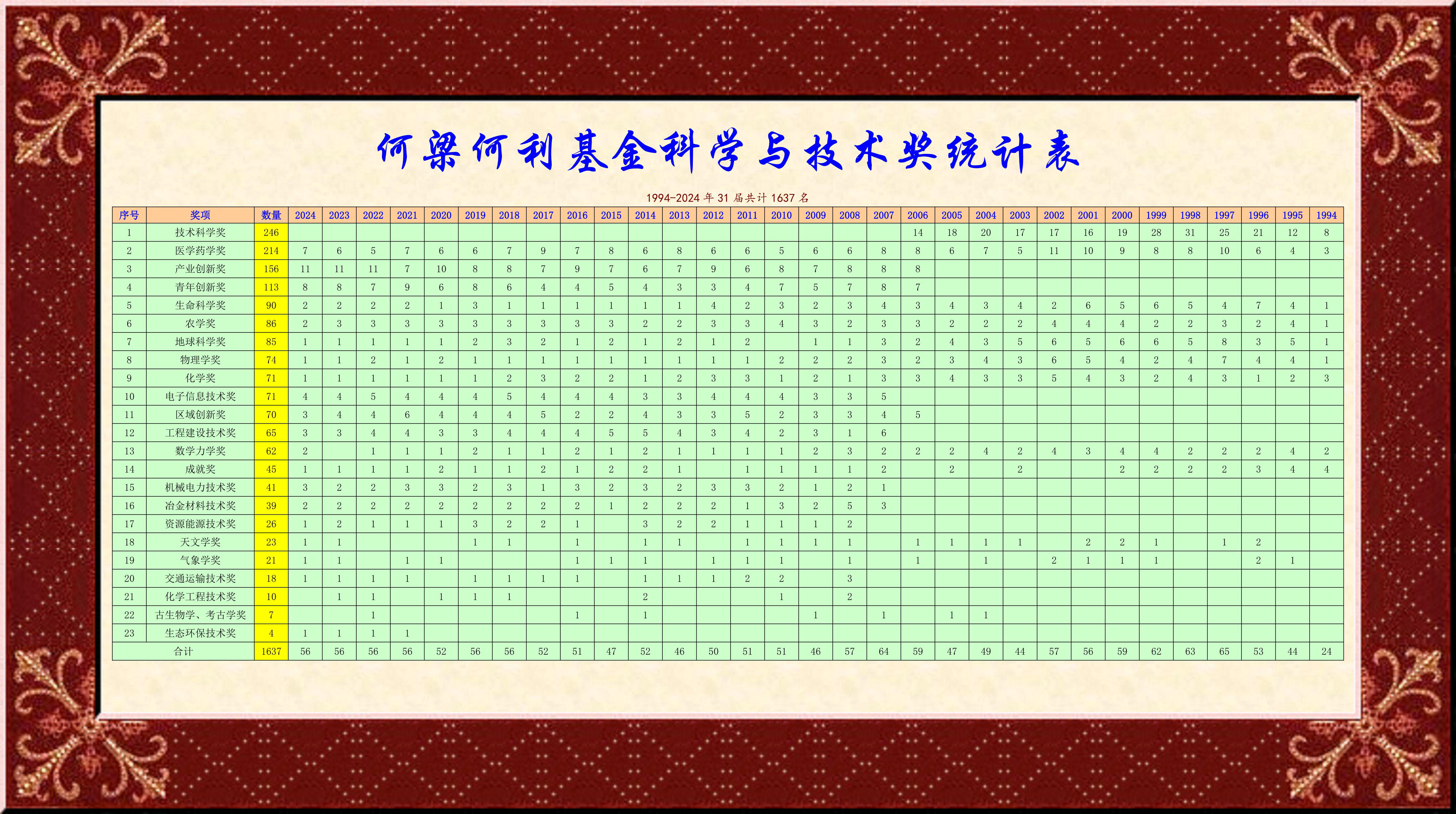 何梁何利基金由香港愛(ài)國(guó)金融家何善衡、梁銶琚、何添、利國(guó)偉于1994年創(chuàng)立,旨在獎(jiǎng)勵(lì)中國(guó)杰出科學(xué)家,服務(wù)于國(guó)家現(xiàn)代化建設(shè)。今年是何梁何利基金成立30周年,30年來(lái)共獎(jiǎng)勵(lì)了1638位科技工作者。