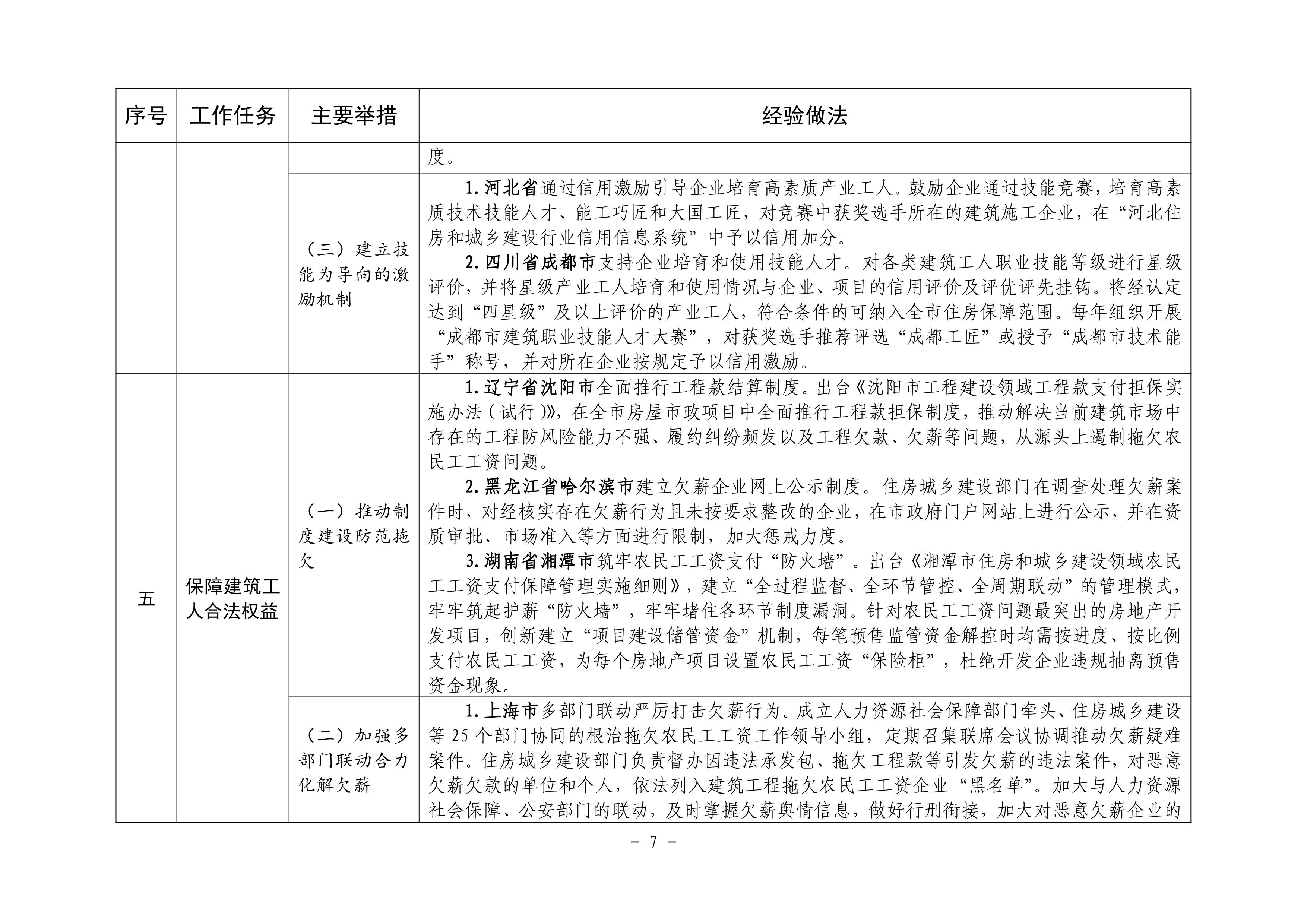 按照住房城鄉(xiāng)建設(shè)部等部門《關(guān)于加快培育新時(shí)代建筑產(chǎn)業(yè)工人隊(duì)伍的指導(dǎo)意見》(建市〔2020〕105 號(hào))要求,各地圍繞推進(jìn)建筑農(nóng)民工向新時(shí)代建筑產(chǎn)業(yè)工人轉(zhuǎn)型、完善建筑工人實(shí)名制管理、提升建筑工人技能水平、加強(qiáng)統(tǒng)籌協(xié)作和政策支持、保障建筑工人合法權(quán)益等方面,積極探索、大力推進(jìn)建筑產(chǎn)業(yè)工人隊(duì)伍建設(shè),取得了積極成效。現(xiàn)將有關(guān)經(jīng)驗(yàn)做法印發(fā)給你們,請結(jié)合實(shí)際學(xué)習(xí)借鑒。