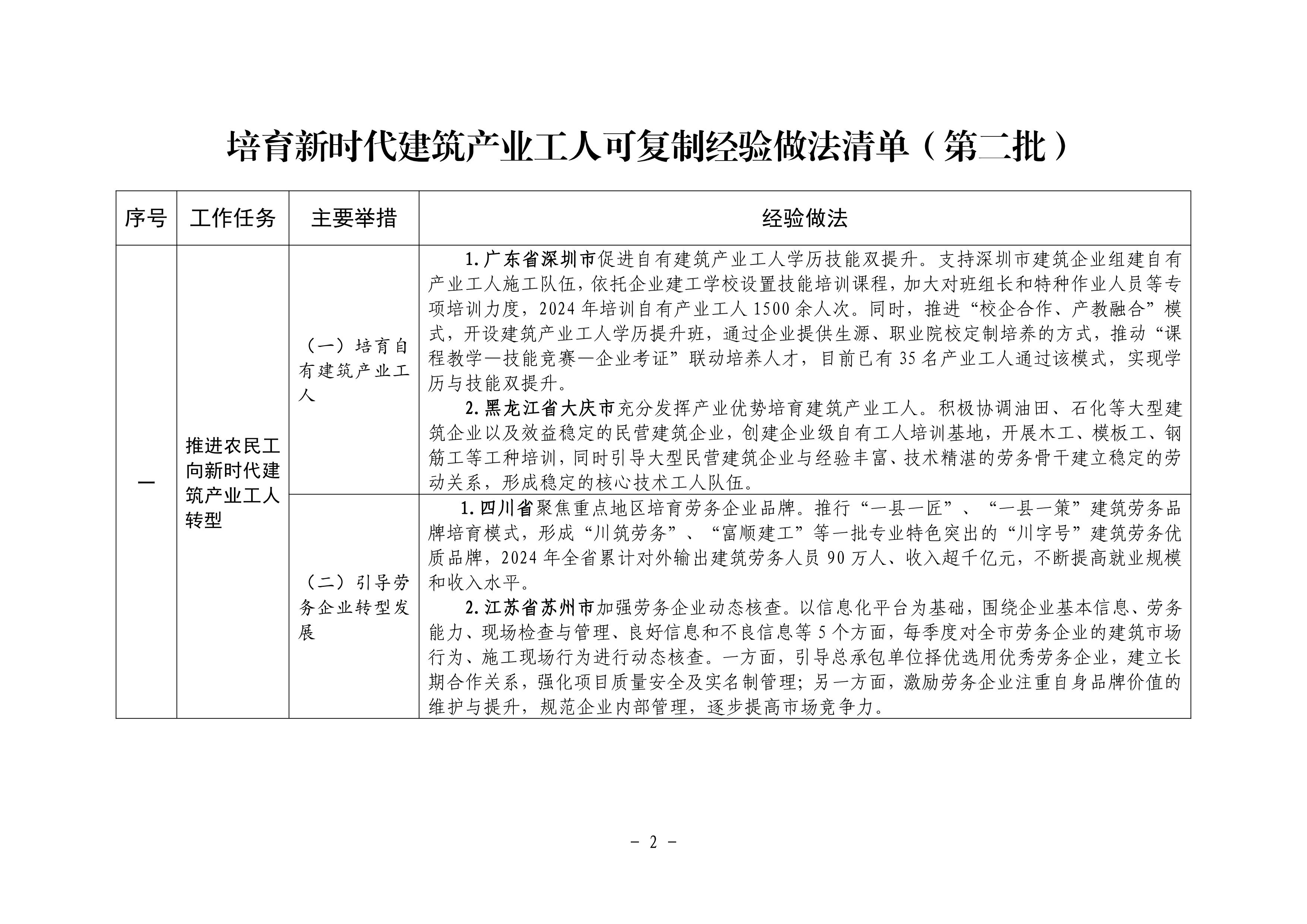 附件:培育新時(shí)代建筑產(chǎn)業(yè)工人可復(fù)制經(jīng)驗(yàn)做法清單(第二批)