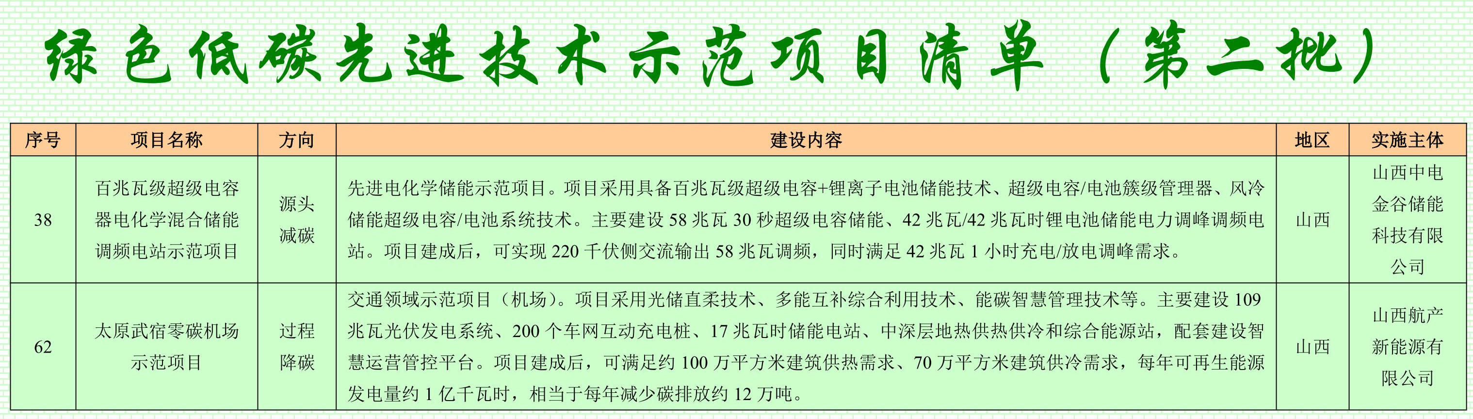本報太原5月16日訊(記者王龍飛)近日,國家發(fā)展改革委正式公布《綠色低碳先進技術示范項目清單(第二批)》,我省有兩個項目成功入選,分別是太原武宿零碳機場項目和中電金谷偏關混合儲能調(diào)頻電站項目。