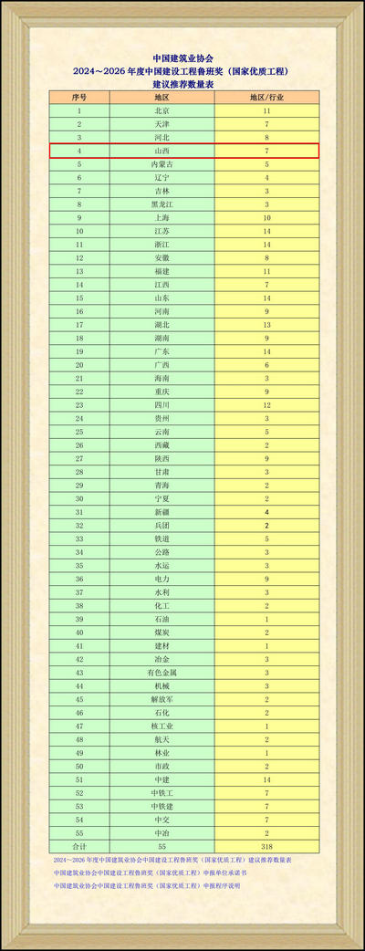 附件:1、2024~2026年度中國建筑業(yè)協(xié)會(huì)中國建設(shè)工程魯班獎(jiǎng)(國家優(yōu)質(zhì)工程)建議推薦數(shù)量表