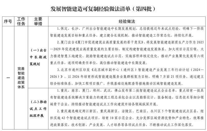 住房城鄉(xiāng)建設(shè)部辦公廳關(guān)于印發(fā)發(fā)展智能建造可復(fù)制經(jīng)驗做法清單(第四批)的通知