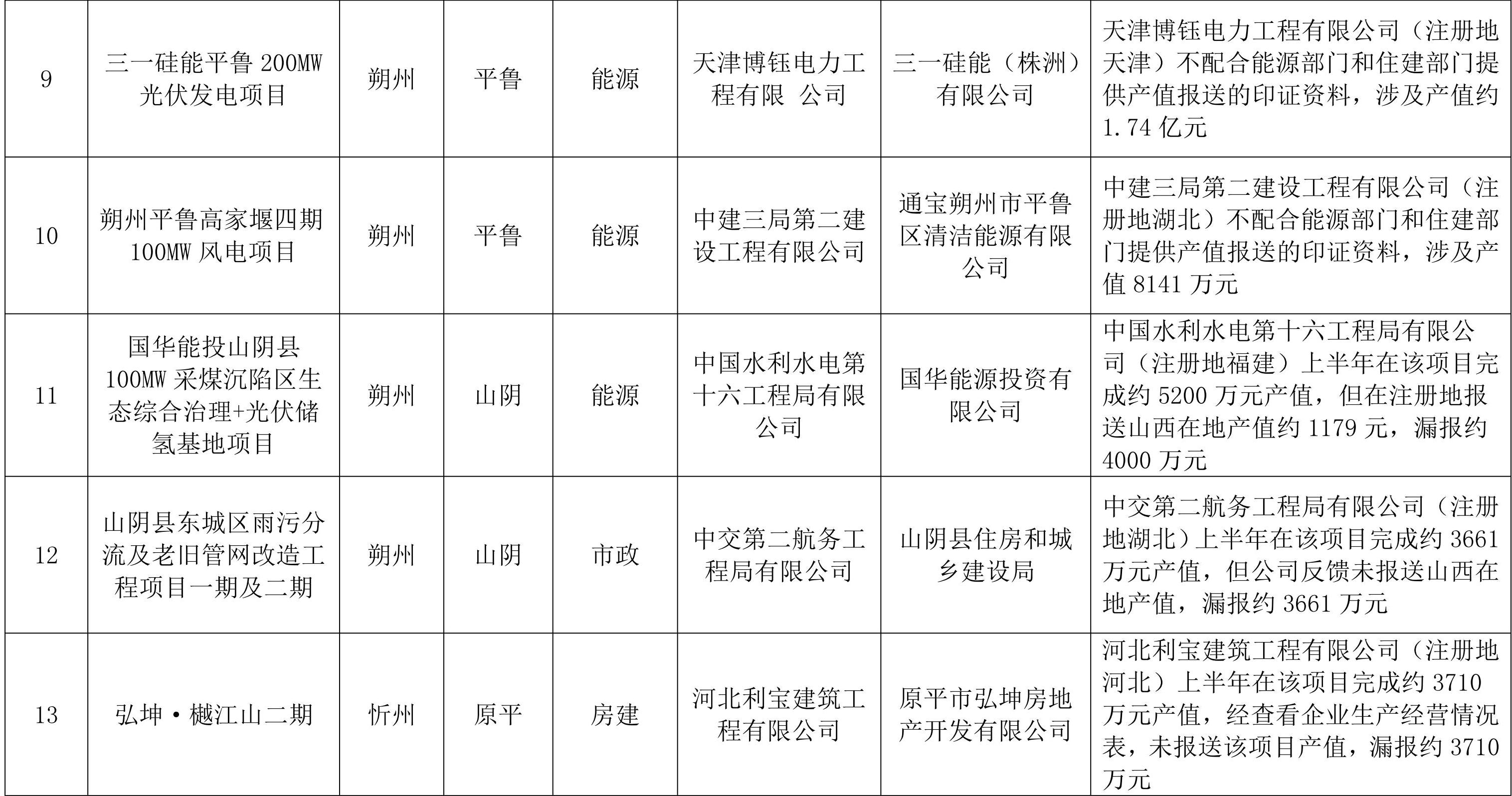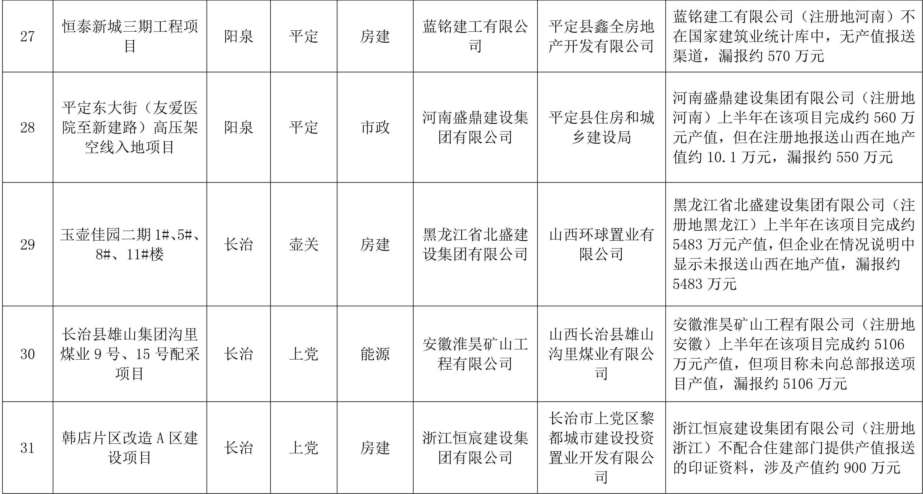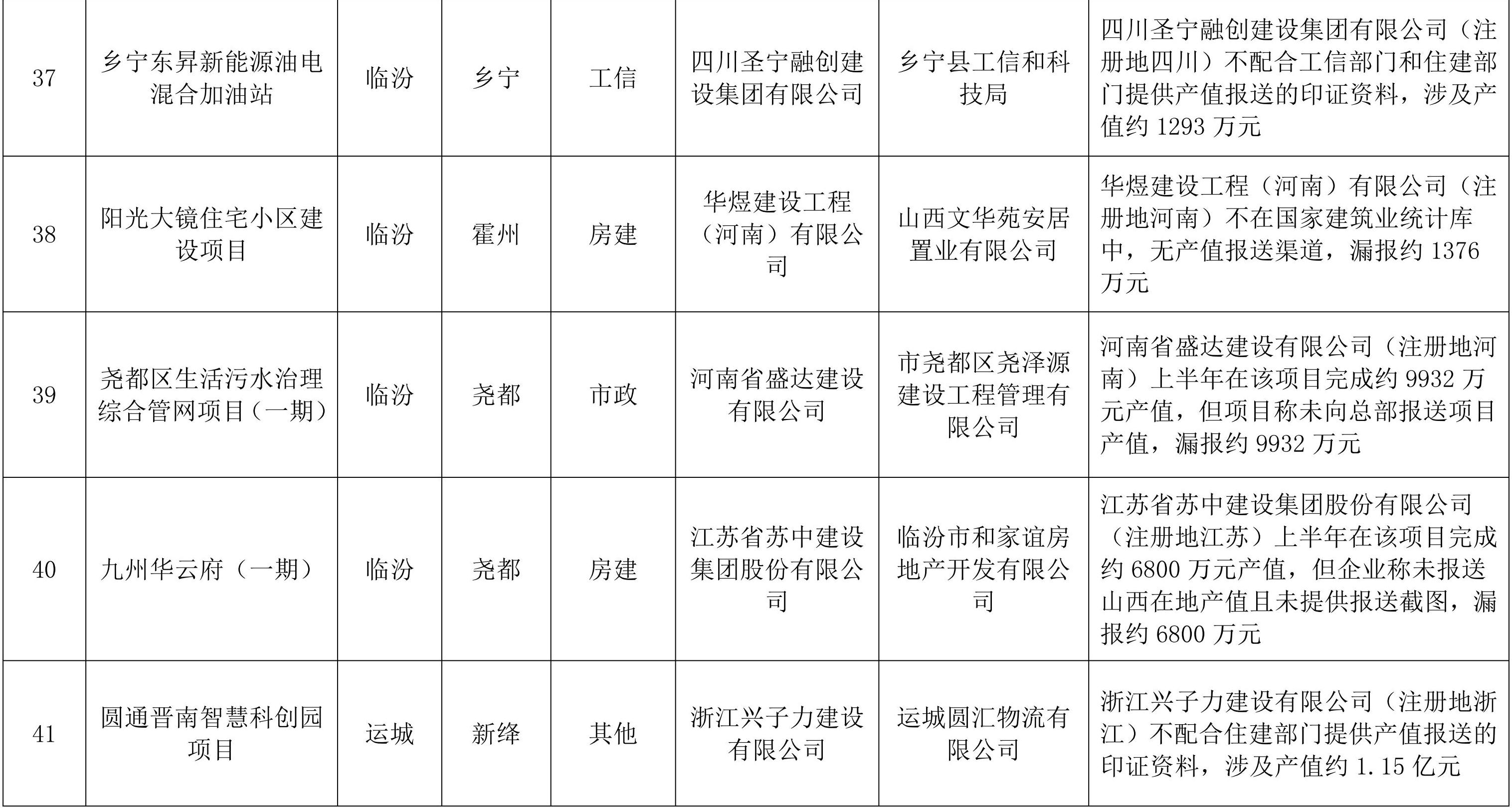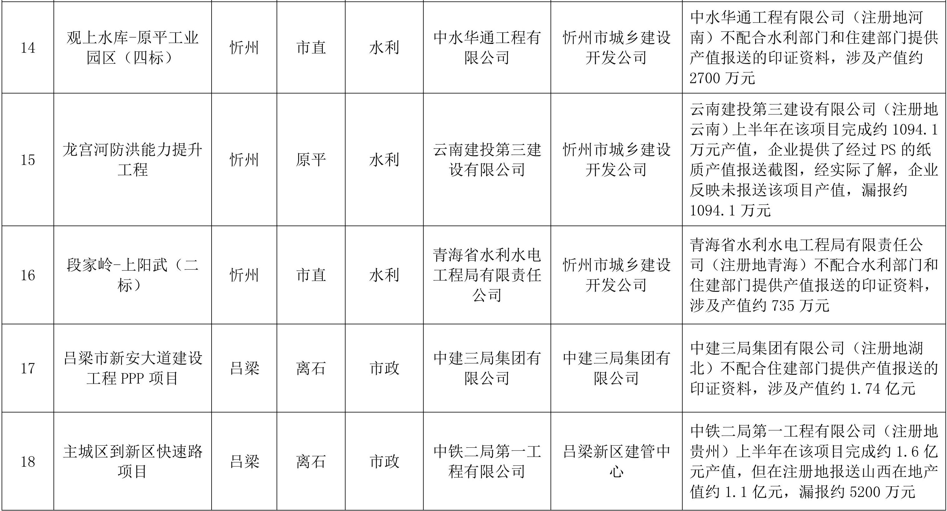按照安排,省建筑業(yè)運(yùn)行工作專班于2025年7月28日至8月8日開展了全省建筑業(yè)運(yùn)行情況督查檢查工作,實(shí)地核查了11個(gè)市38個(gè)縣(市、區(qū))和山西轉(zhuǎn)型綜合改革示范區(qū)的120個(gè)在建項(xiàng)目。督查中發(fā)現(xiàn)部分項(xiàng)目施工企業(yè)存在產(chǎn)值漏報(bào)、數(shù)據(jù)造假、不配合行業(yè)部門提供印證資料等問題,違反了《中華人民共和國(guó)統(tǒng)計(jì)法》第八條“國(guó)家機(jī)關(guān)、企業(yè)事業(yè)單位和其他組織以及個(gè)體工商戶和個(gè)人等統(tǒng)計(jì)調(diào)查對(duì)象,必須依照本法和國(guó)家有關(guān)規(guī)定,真實(shí)、準(zhǔn)確、完整、及時(shí)地提供統(tǒng)計(jì)調(diào)查所需的資料,不得提供不真實(shí)或者不完整的統(tǒng)計(jì)資料,不得遲報(bào)、拒報(bào)統(tǒng)計(jì)資料”規(guī)定,無法真實(shí)反映我省建筑業(yè)在地產(chǎn)值情況,給國(guó)家和我省經(jīng)濟(jì)造成損失。