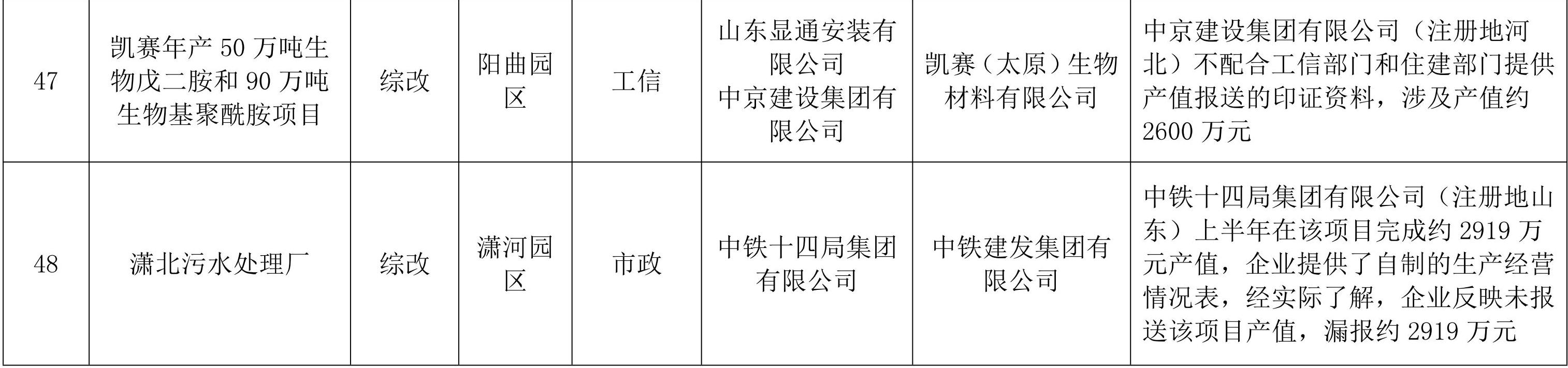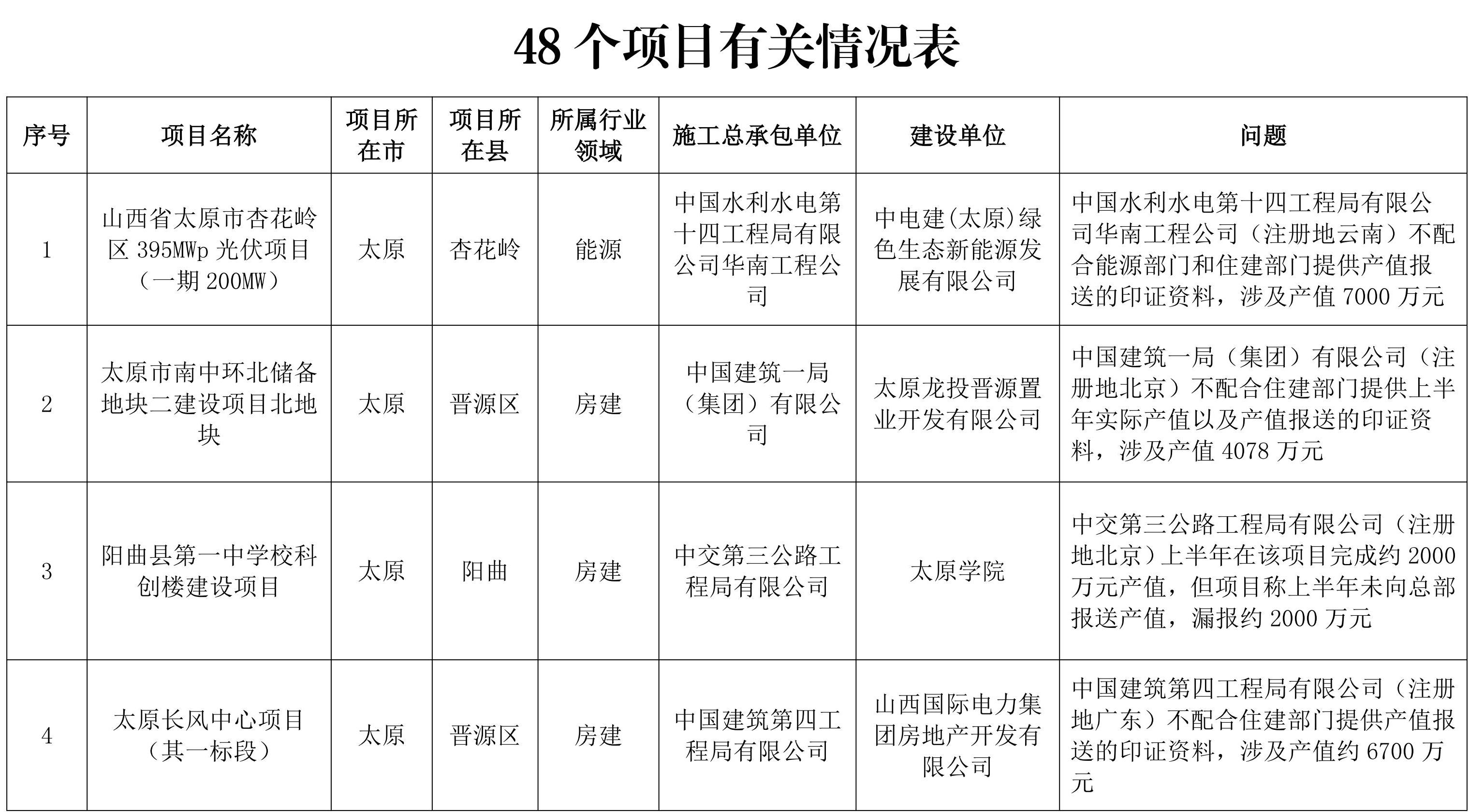 經(jīng)各市建筑業(yè)專班和項(xiàng)目負(fù)責(zé)人認(rèn)定,現(xiàn)將48個(gè)項(xiàng)目的有關(guān)情況予以公布。各市建筑業(yè)專班要緊盯問題,做好“回頭看”,確保漏報(bào)產(chǎn)值在三季度如實(shí)報(bào)送。