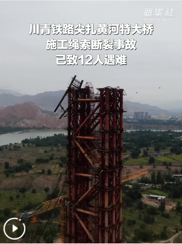 綜合媒體報道,事故發(fā)生時,尖扎黃河特大橋工程正在進行鋼絞線張拉作業(yè),現(xiàn)場突發(fā)鋼索斷裂,引發(fā)鋼拱掉落、扣塔頂張拉平臺同步翻落,導致16名作業(yè)人員不幸跌落,其中15名為施工工人,1名為工程項目部現(xiàn)場負責人。