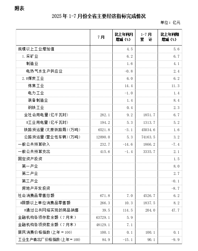 總的來(lái)看,在宏觀政策持續(xù)發(fā)力顯效和全省上下共同努力下,1-7月份全省經(jīng)濟(jì)運(yùn)行頂住壓力、平穩(wěn)增長(zhǎng)。同時(shí)也要看到,部分行業(yè)領(lǐng)域增速有所回落,下階段經(jīng)濟(jì)延續(xù)穩(wěn)定增長(zhǎng)勢(shì)頭仍存壓力。下一步,要深入學(xué)習(xí)貫徹習(xí)近平總書記考察山西重要講話重要指示精神,按照省委十二屆十次全會(huì)部署安排,堅(jiān)定落實(shí)各項(xiàng)宏觀政策,深入實(shí)施提振消費(fèi)專項(xiàng)行動(dòng),擴(kuò)圍提質(zhì)實(shí)施“兩新”政策,積極擴(kuò)大有效投資,高質(zhì)量推動(dòng)“兩重”建設(shè),奮力推動(dòng)全省經(jīng)濟(jì)持續(xù)穩(wěn)定運(yùn)行、回升向好。