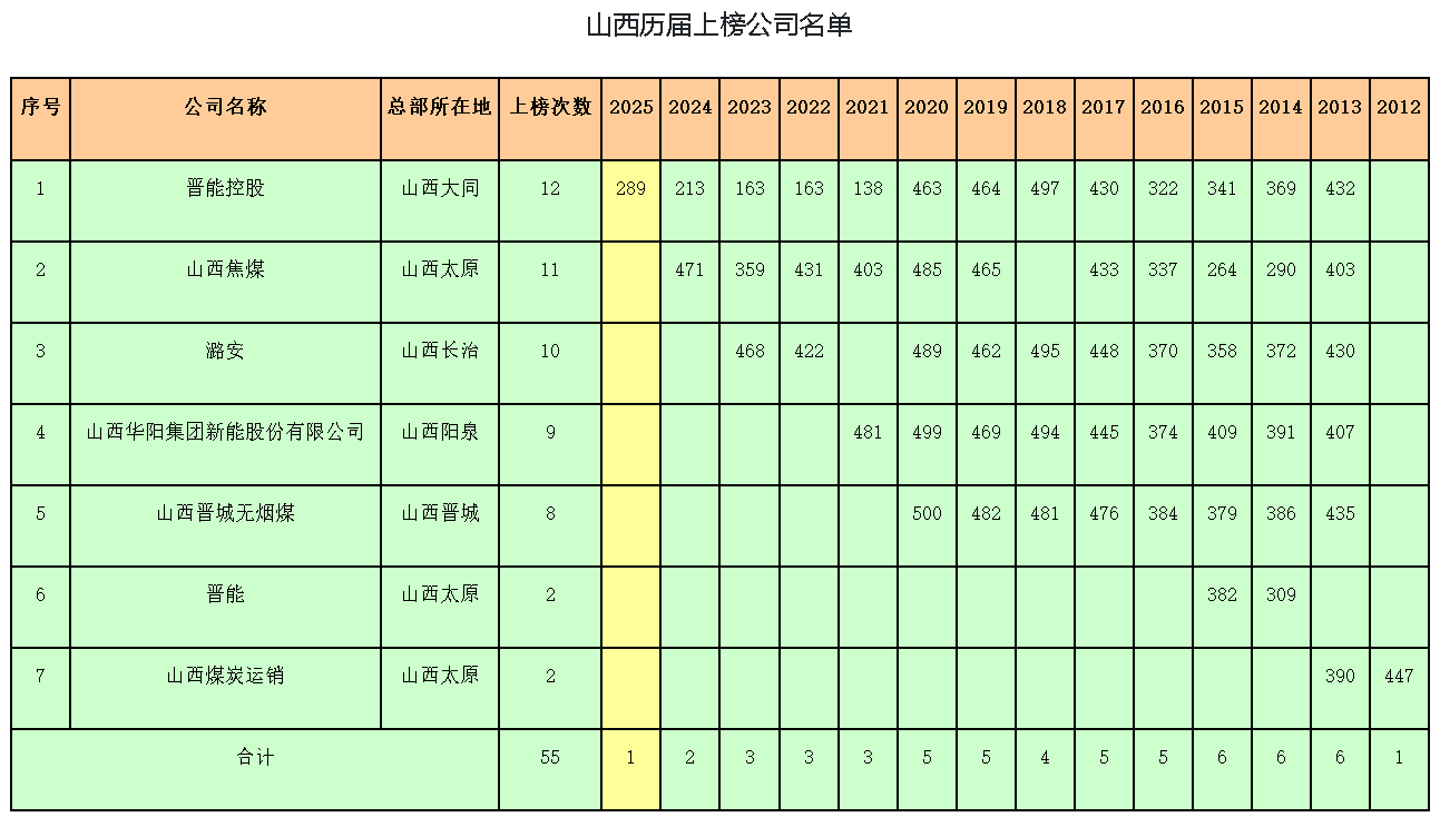 此后,伴隨著煤銷體制改革和晉能集團(tuán)組建,上榜世界500強(qiáng)晉企基本以五大煤企(同煤、焦煤、潞安、陽(yáng)煤、晉煤)為主,基本就是5家左右。