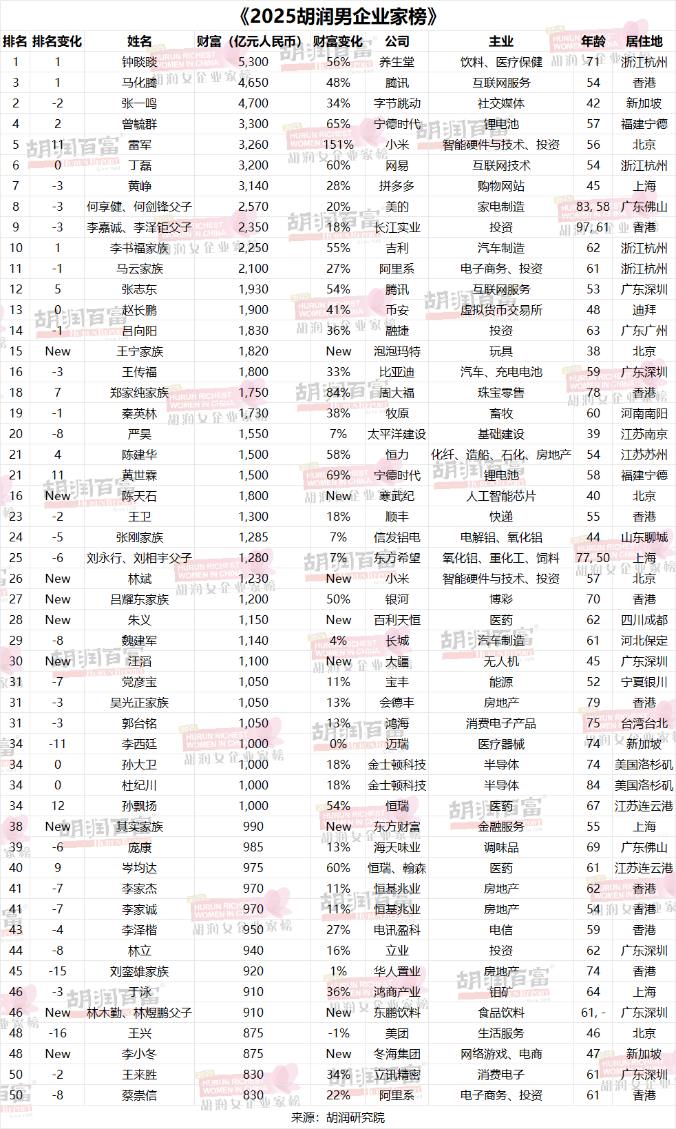 胡潤研究院發(fā)布《2025胡潤女企業(yè)家榜》