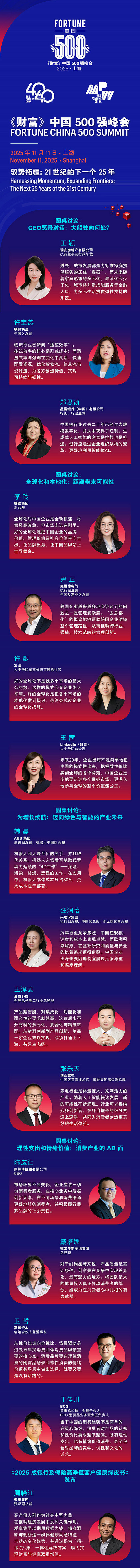 11月11日,2025年《財富》中國500強(qiáng)峰會在上海成功舉辦。以“馭勢拓疆:21世紀(jì)的下一個25年”為主題的本次峰會,匯聚了500強(qiáng)公司領(lǐng)導(dǎo)者、最具創(chuàng)新精神的企業(yè)領(lǐng)袖和專家學(xué)者,深入探討企業(yè)如何在新秩序塑造的進(jìn)程中,引領(lǐng)并定義一條融合智能、韌性與可持續(xù)的未來之路。