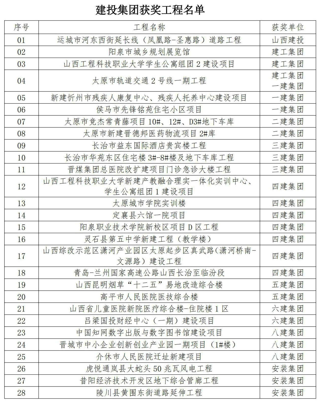 山西建投集團承建的28項工程榮獲首屆山西省優(yōu)質(zhì)工程獎