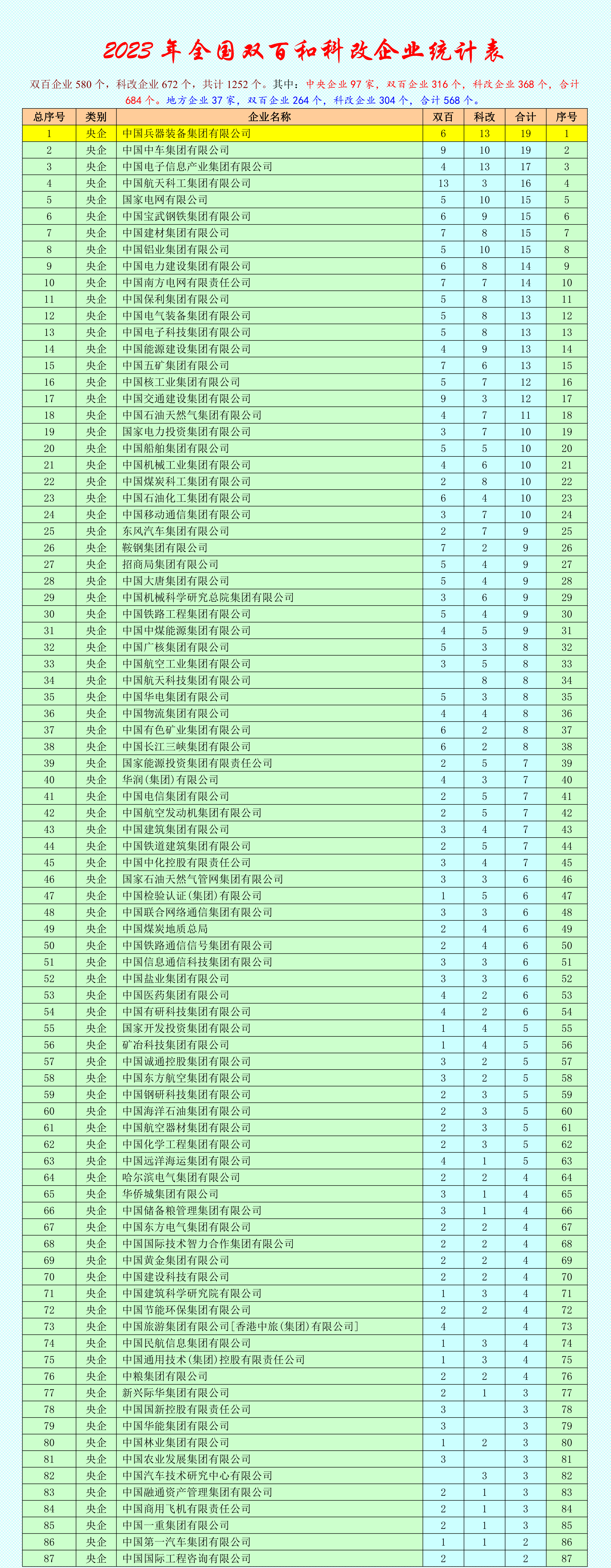 人民網(wǎng)北京5月23日電 (黃盛)日前,國(guó)務(wù)院國(guó)資委發(fā)布了最新“科改企業(yè)”名單和最新“雙百企業(yè)”名單。其中,“科改企業(yè)”數(shù)量擴(kuò)至672戶,“雙百企業(yè)”數(shù)量擴(kuò)至580戶。