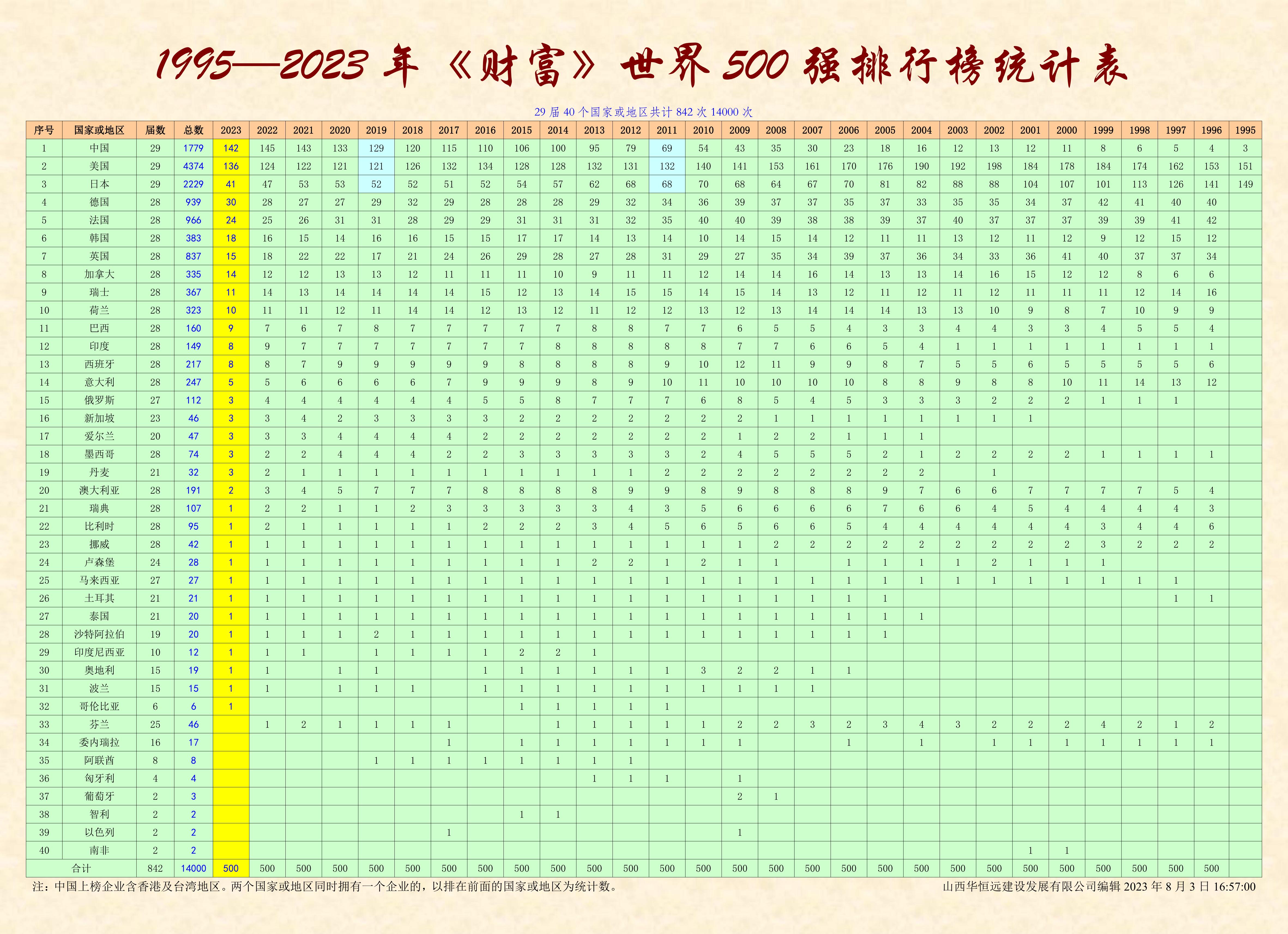 1995年,《財(cái)富》雜志首次公布世界500強(qiáng)企業(yè)。日本有149家,美國有151家,占世界500強(qiáng)企業(yè)的近30%。當(dāng)時(shí),世界500強(qiáng)企業(yè)中只有3家在中國。