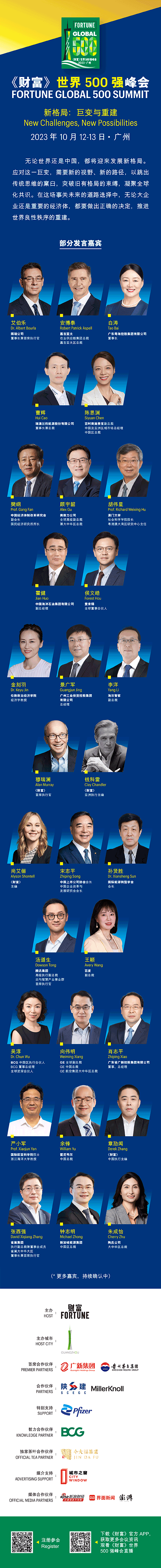 定于10月12日開(kāi)幕的2023年《財(cái)富》世界500強(qiáng)峰會(huì)上,來(lái)自企業(yè)界和學(xué)界的近40位重量級(jí)嘉賓,將在珠江岸邊,圍繞“新格局:巨變與重建”,展開(kāi)思想碰撞,縱論世界經(jīng)濟(jì)前景、行業(yè)進(jìn)步趨勢(shì),共話(huà)產(chǎn)業(yè)發(fā)展未來(lái)。